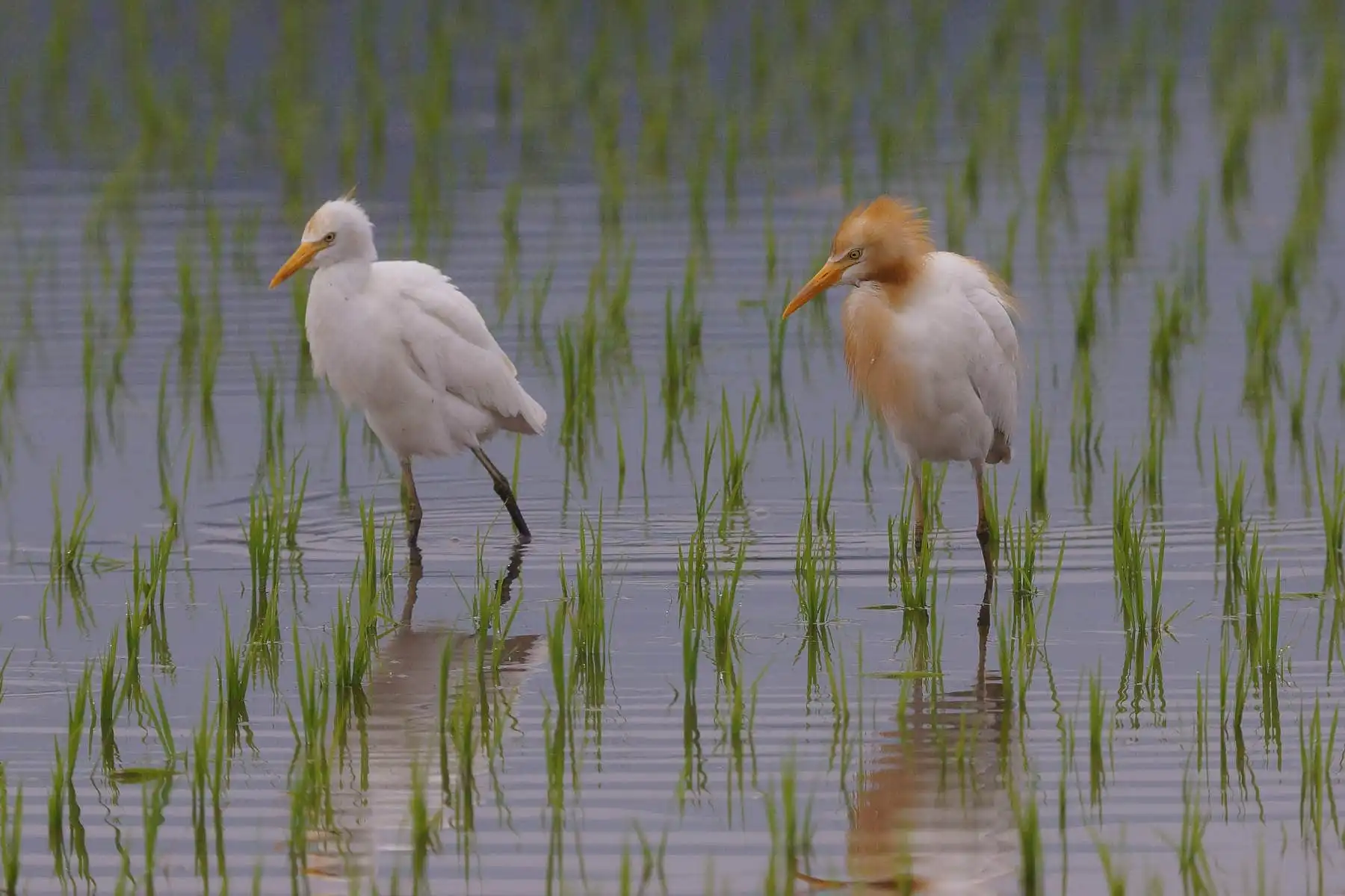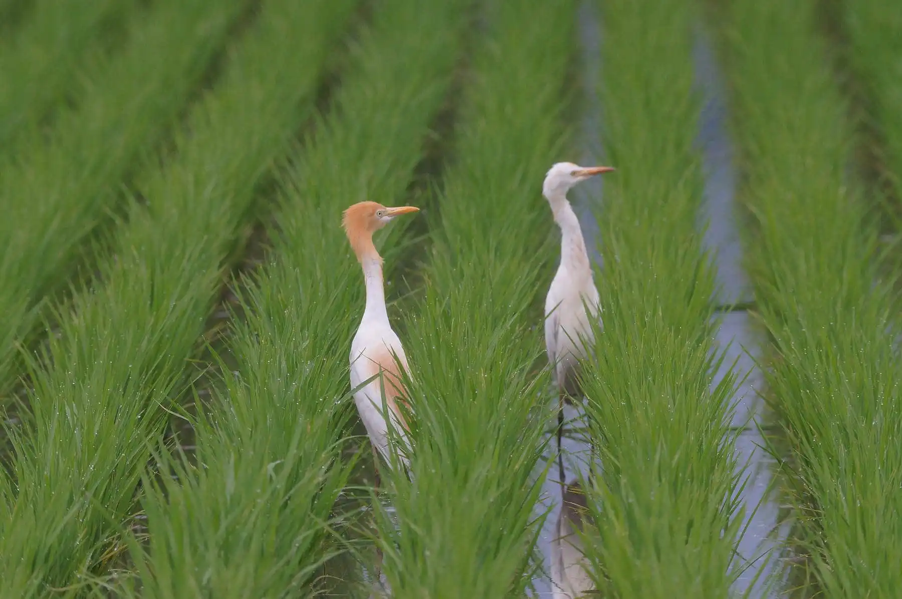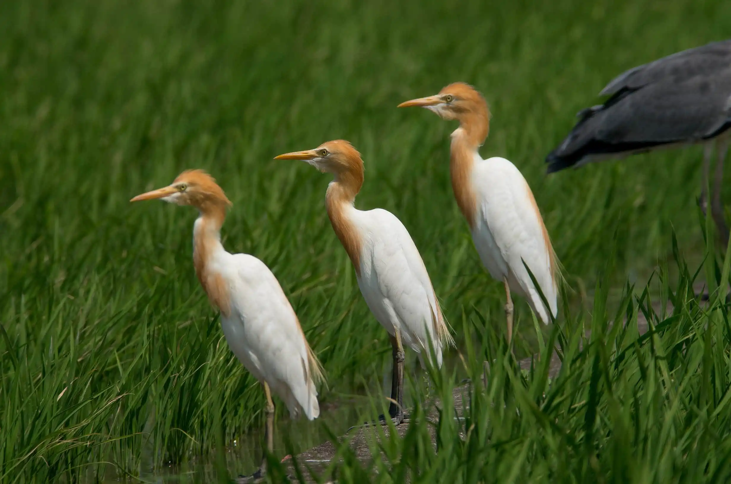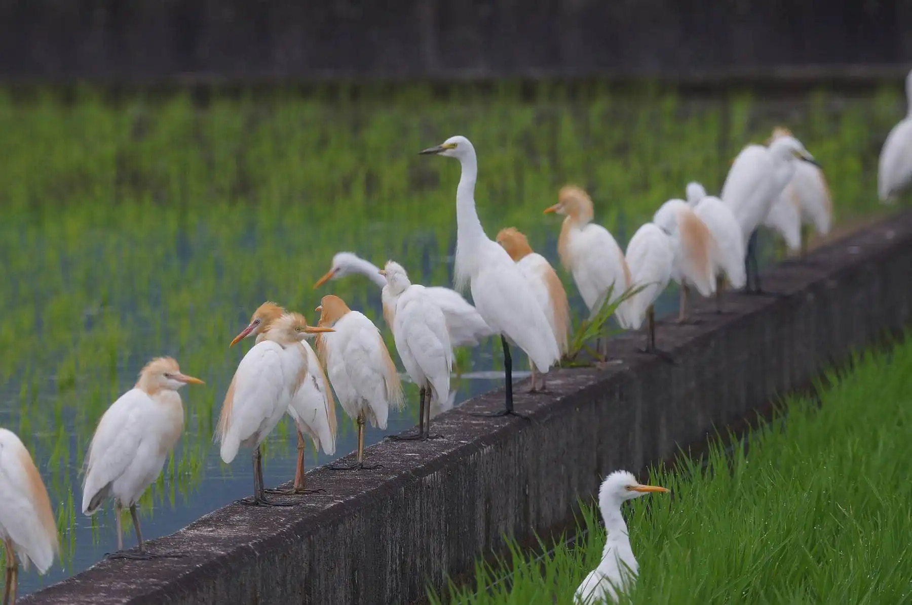 アマサギも向こうからは中々近づいてくれないので、アップ写真はむづかしいが、数羽で群れて稲の間に見え隠れするアマサギは、その色合いから上品な感じがします。 もともとアマサギのような大きい鳥の羽毛は解像させにくいのでボケ味を生かした写真が良いでしょう。