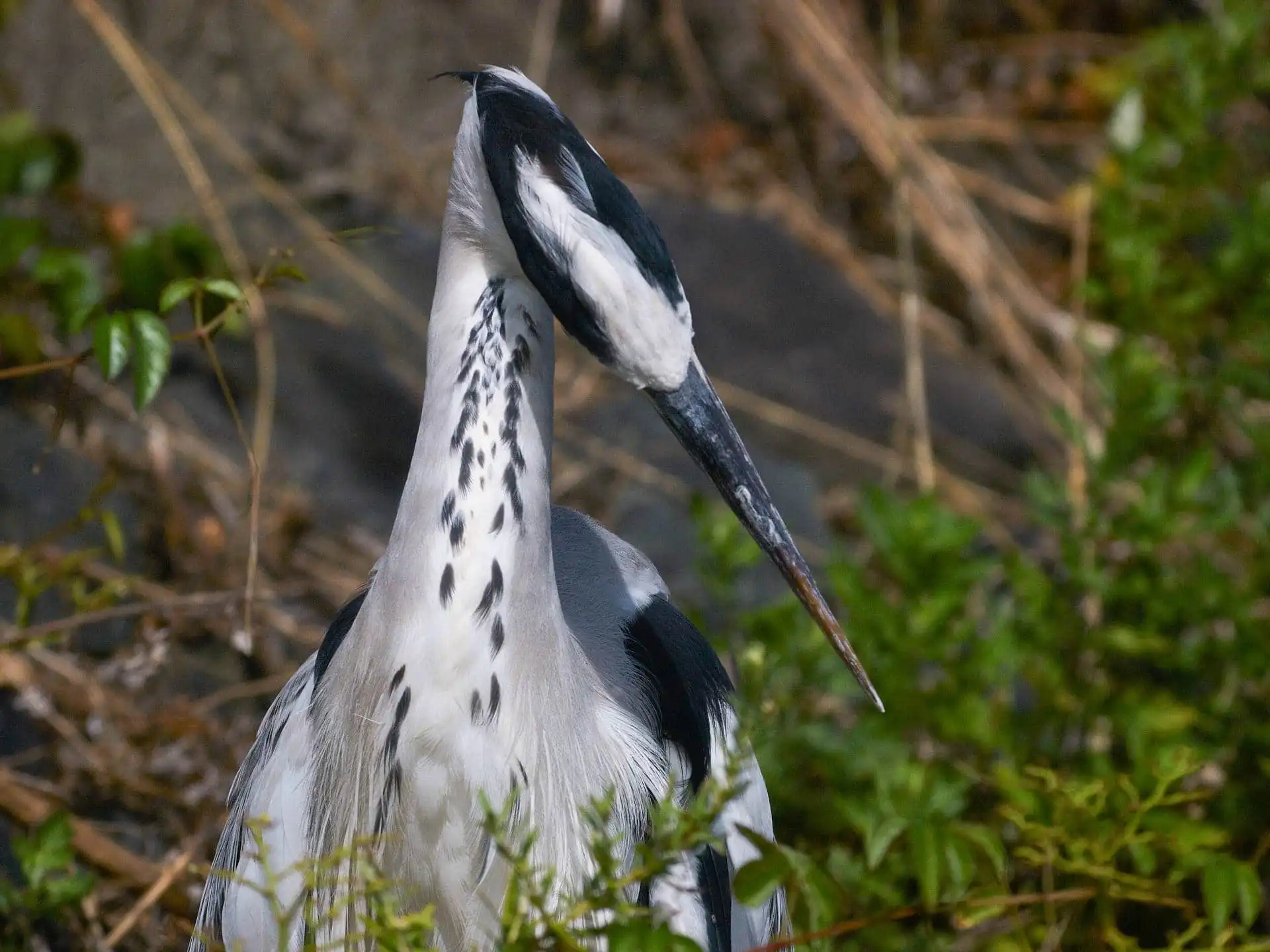 食べ物は魚類、両生類、爬虫類、昆虫。川の流れの無い浅い所を抜き足差し足で忍び寄り、長い首を一瞬で伸ばして頭を水中突っ込み魚を捕る。よく川の浅い背になっている所の上で、遡上してくるアユなどを狙って待っているところを見かけます。