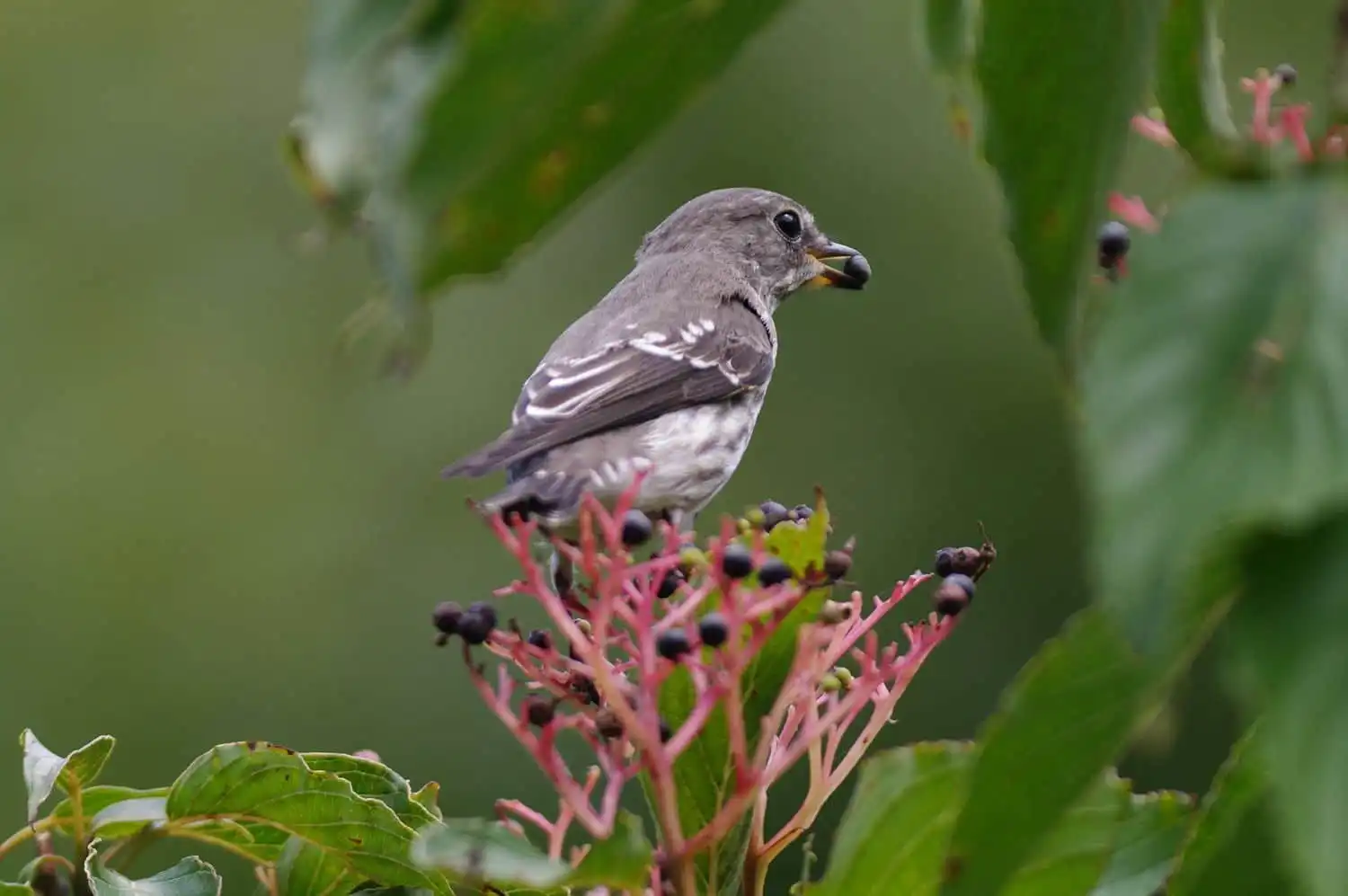 また、木の実が出来ている季節で、エゾビタキはその木の実も食べるので食事中の野鳥は撮影がし易いです。 また、それほど動き回る鳥でもない点も写真撮影し易い野鳥です。 ただ、期間が短いので撮影かし易いですャンスを逃してしまわないように時々気を付けてエゾビタキが来ていないか様子を見に行くようにしないといけません。
