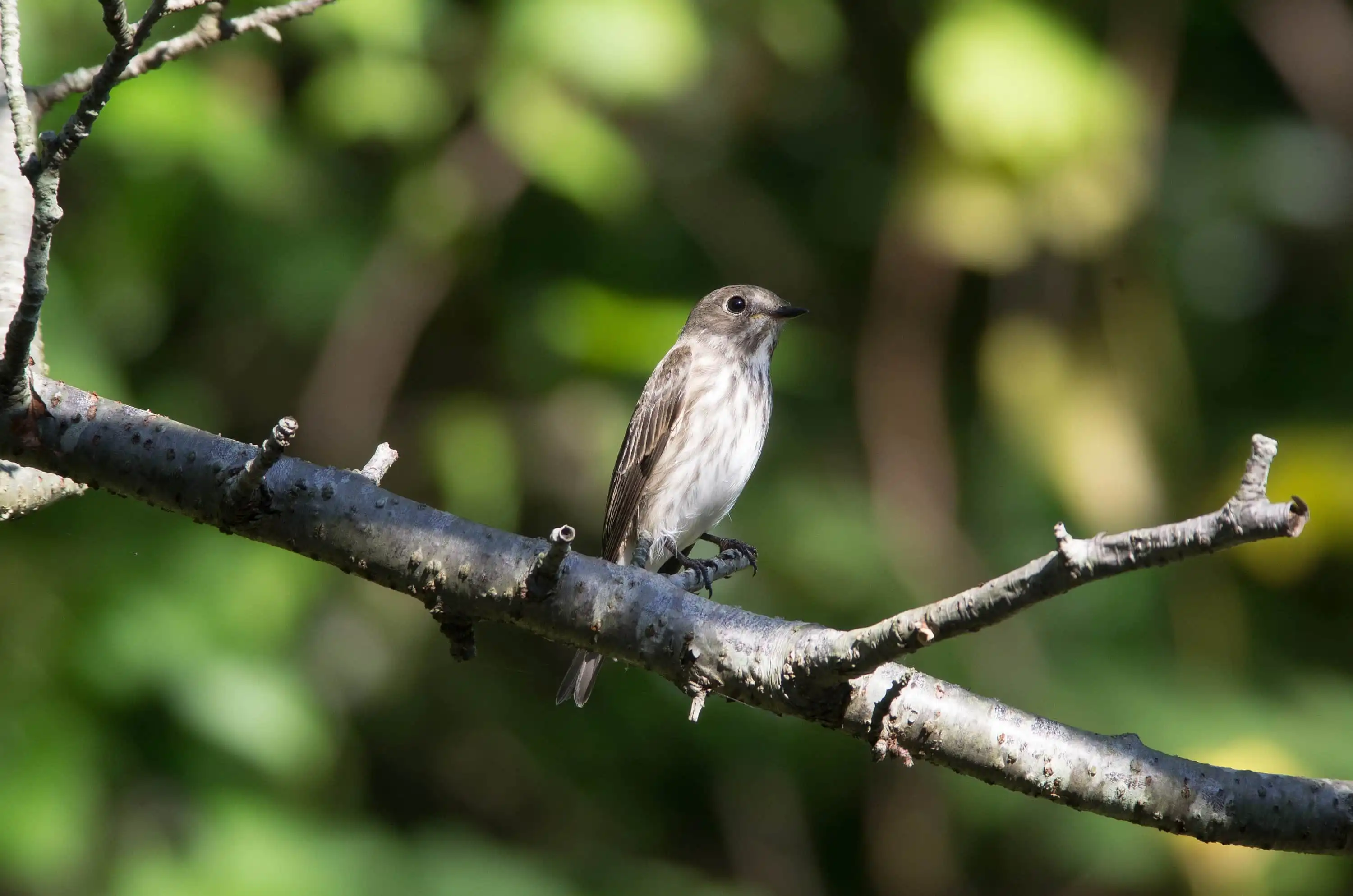 エゾビタキは枝に止まって飛んでいる虫を見つけると飛び上がって捕まえる。 飛び上がってそしてまた元の枝に戻るので撮りやすい鳥です。