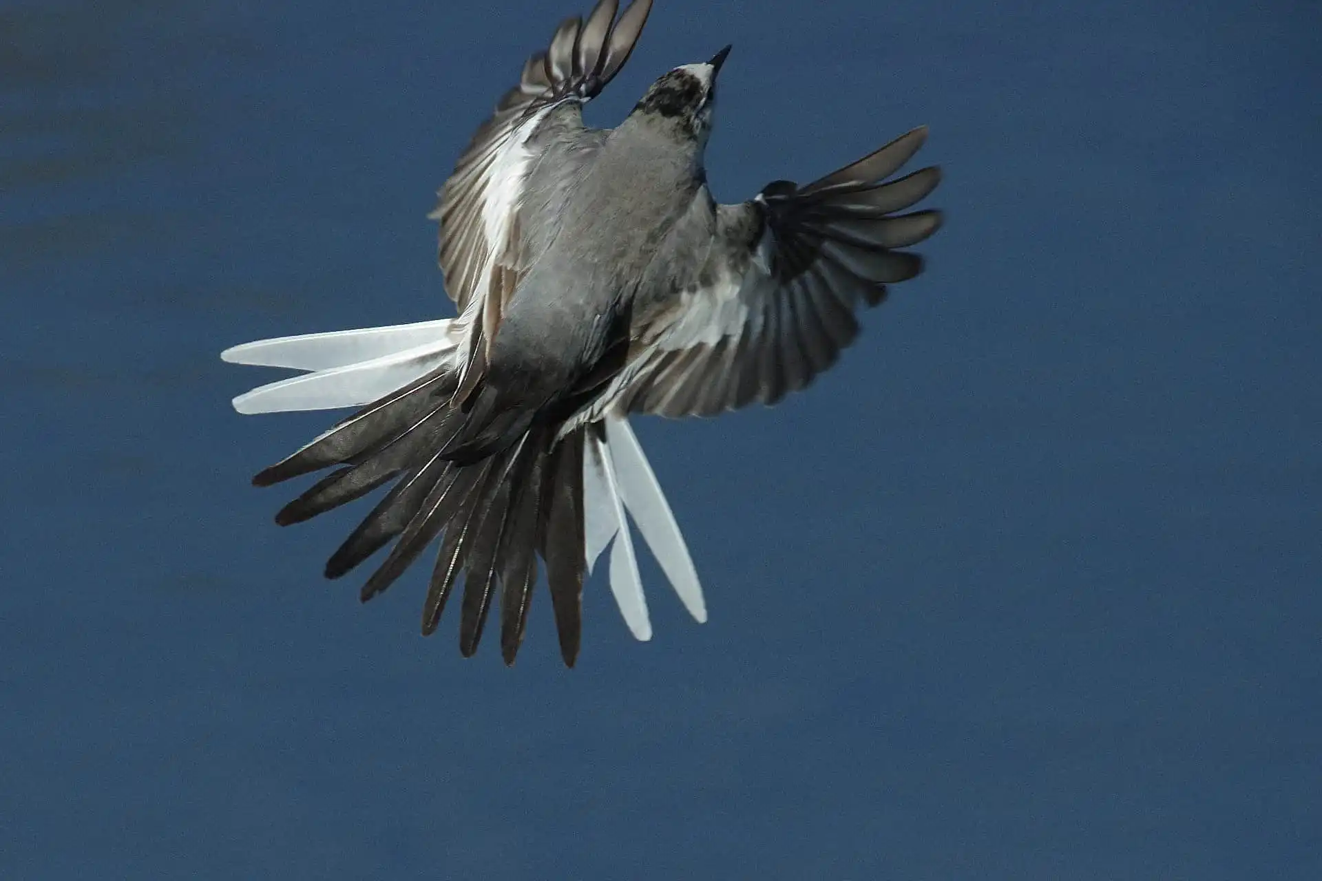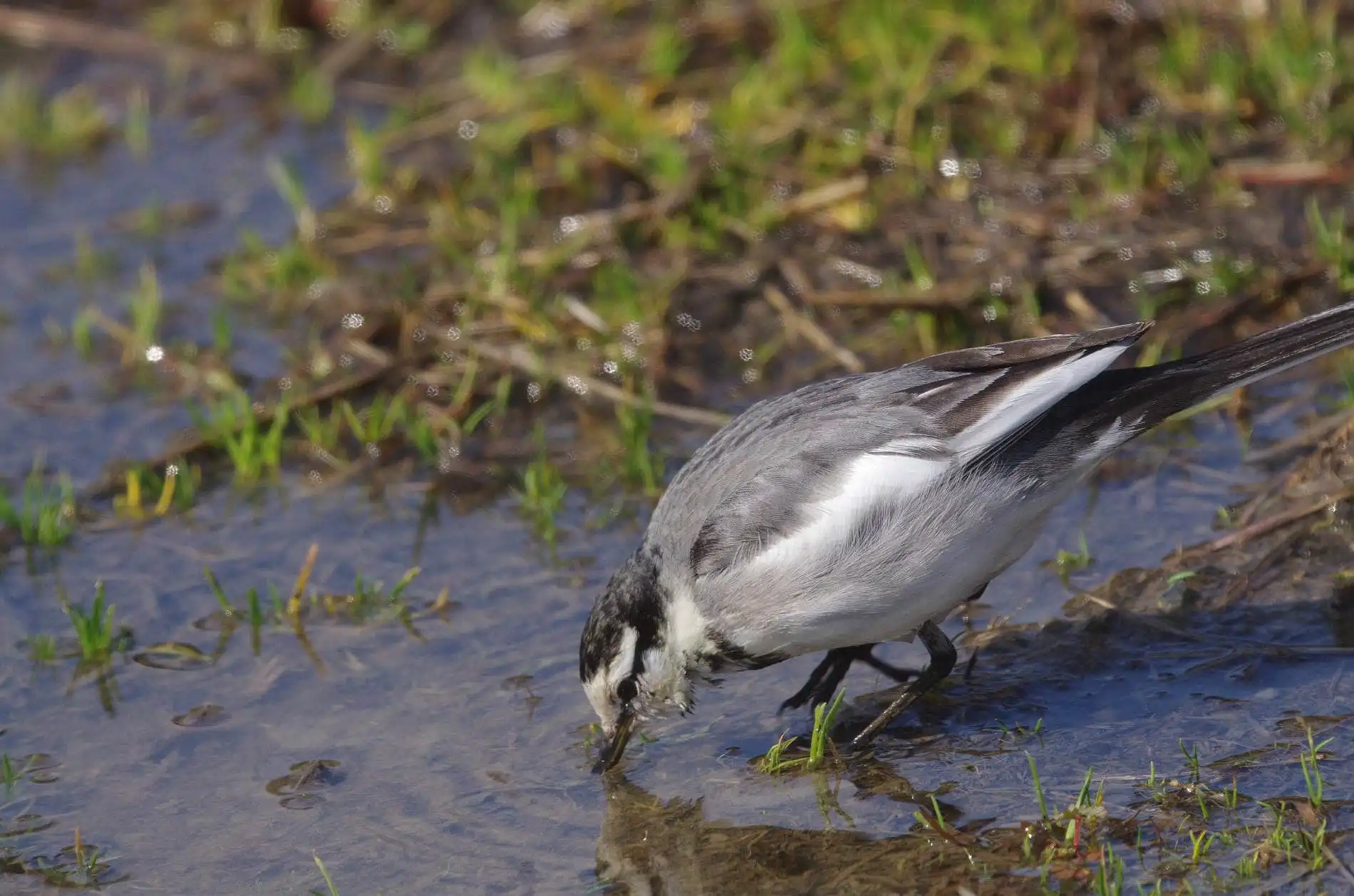 ハクセキレイは基本的には地面や川の浅瀬を歩き回り、ミミズや虫を食べます。空中を飛んでいる鳥もフラフラと飛び上がって捕まえて食べます。飛ぶのは少し場所移動する程度で上下にジグザグに飛びます。 ハクセキレイはとにかく良く歩く鳥ですが、時々は停止しますので、まずはその時を狙えば簡単に撮影できます。