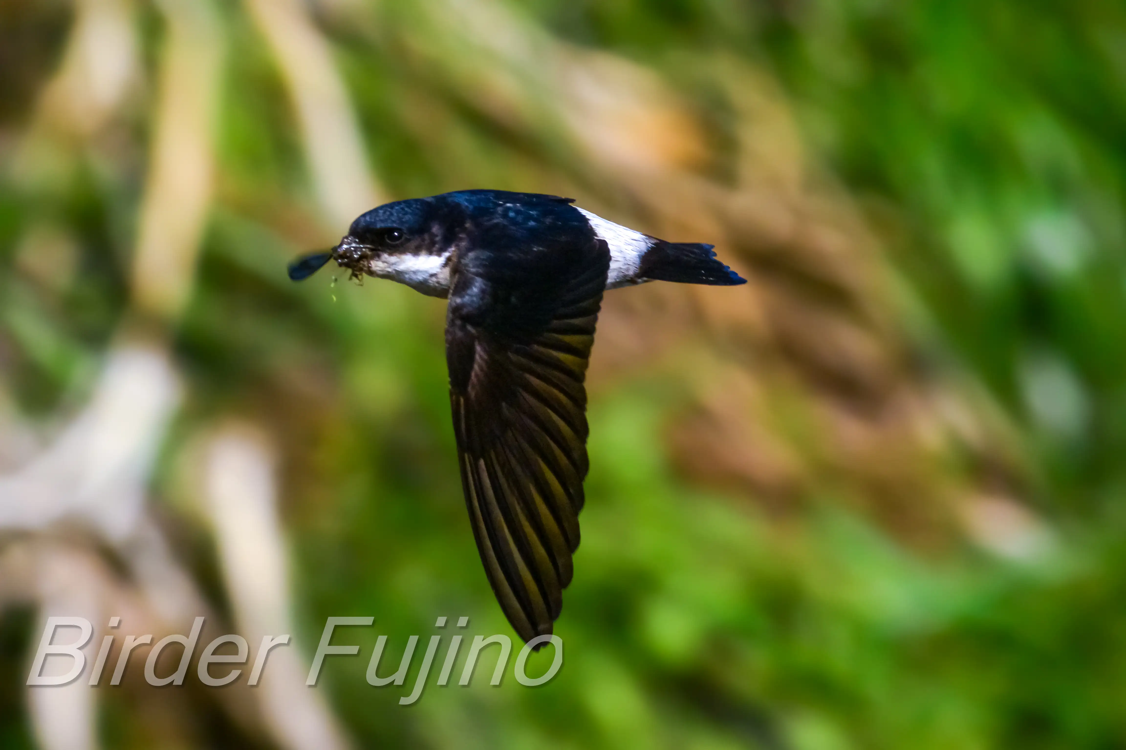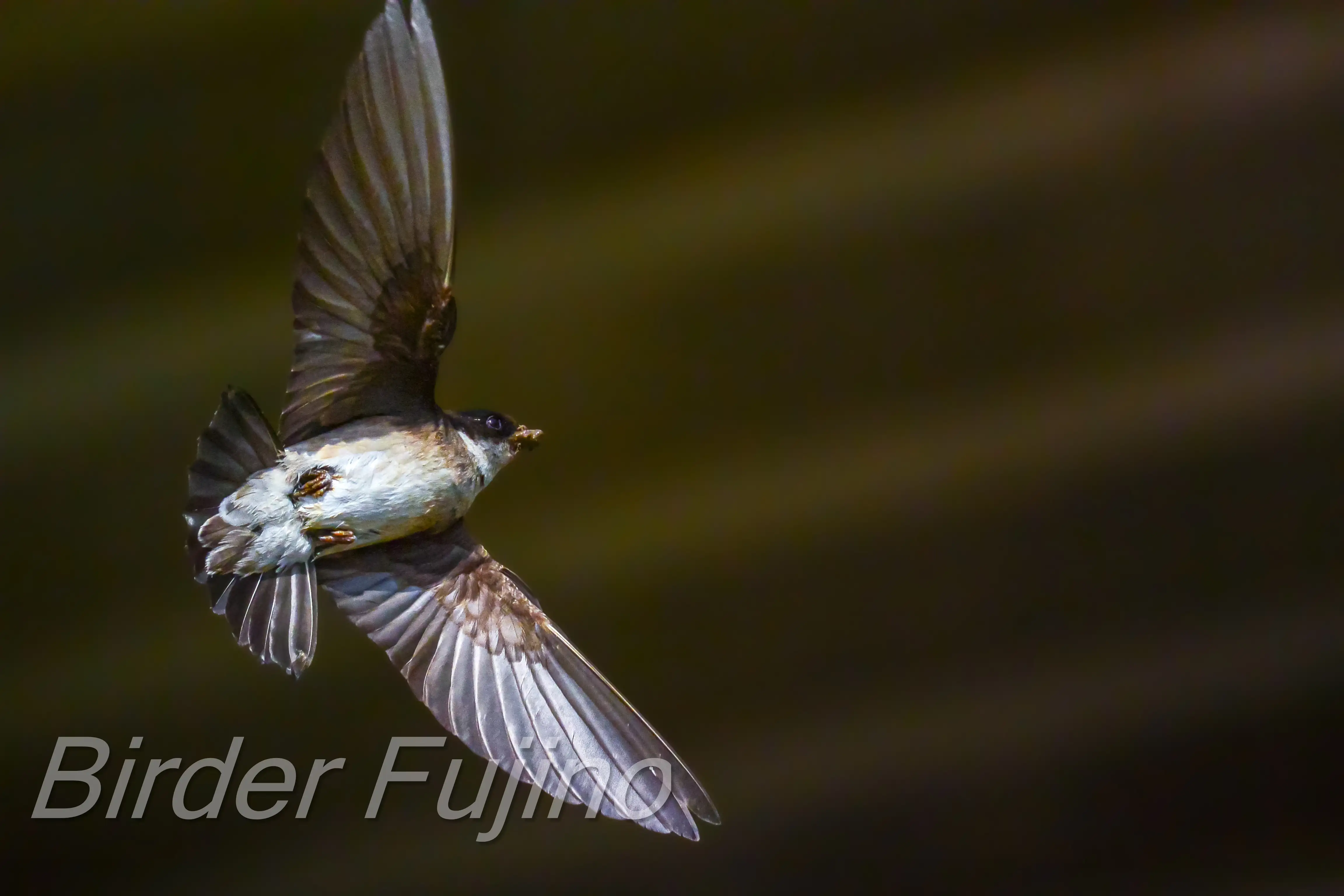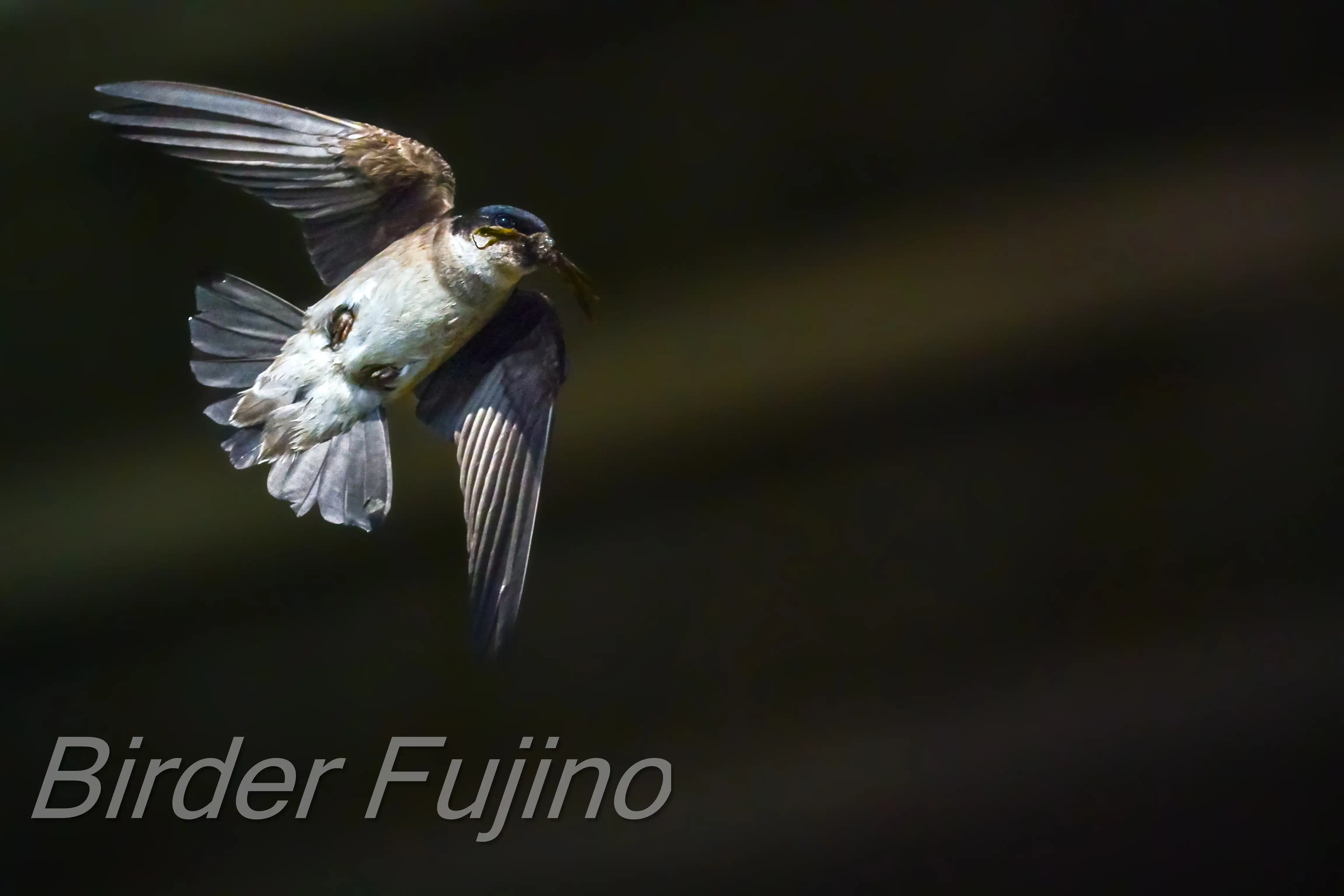 和歌山の川にカワセミを撮影に行った時、橋の下に入る少し小さなツバメを見かけて、追ってみたら巣に出入りするツバメが居ました。それがイワツバメとの出会いです。 まだ肌寒い3月頃のことで驚いた。 イワツバメは巣立ちも早く、7月頃にはもういなくなっていました。 それから何回か毎年そこに通って、川面を低く飛ぶイワツバメの飛翔シーンを撮影しています。
