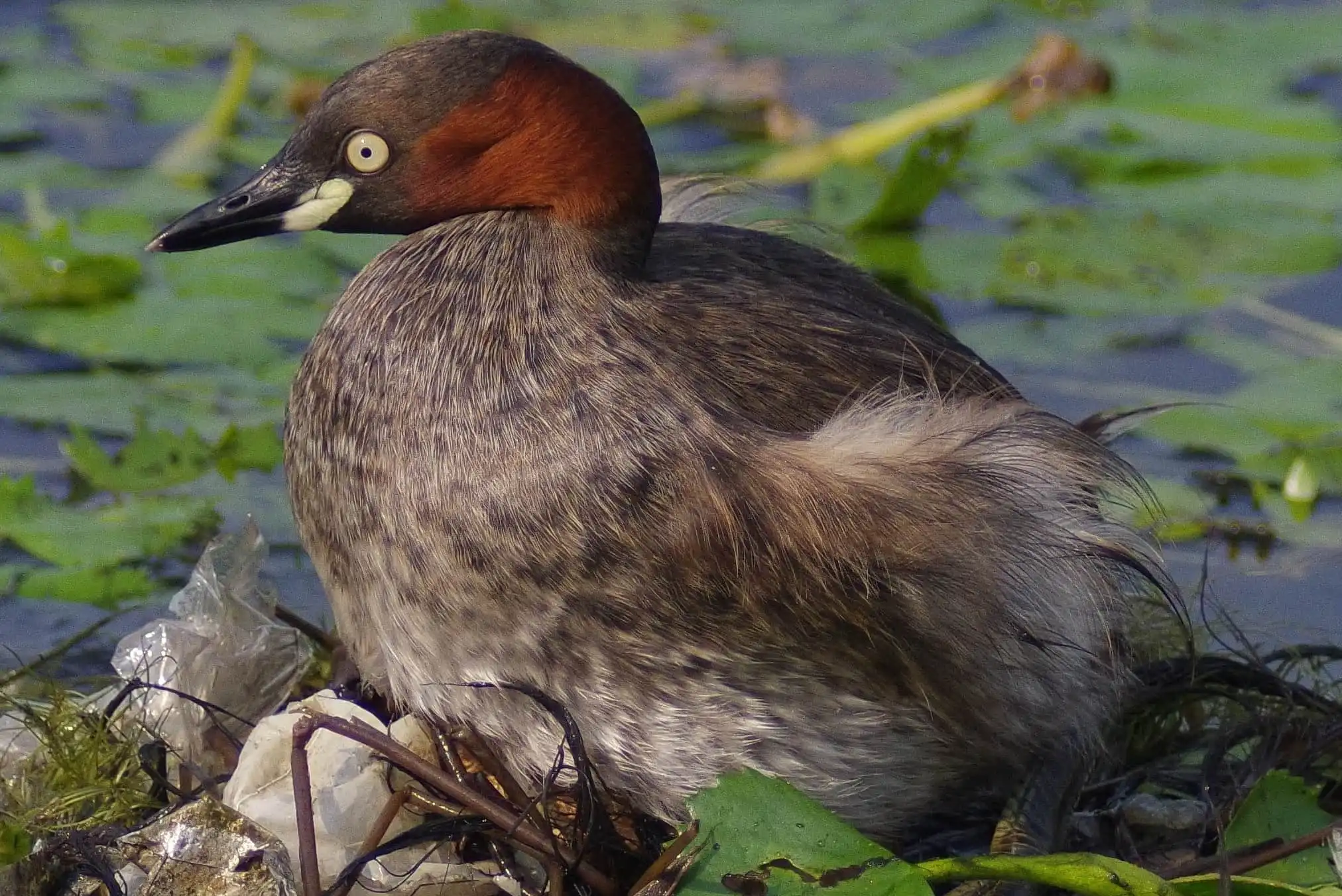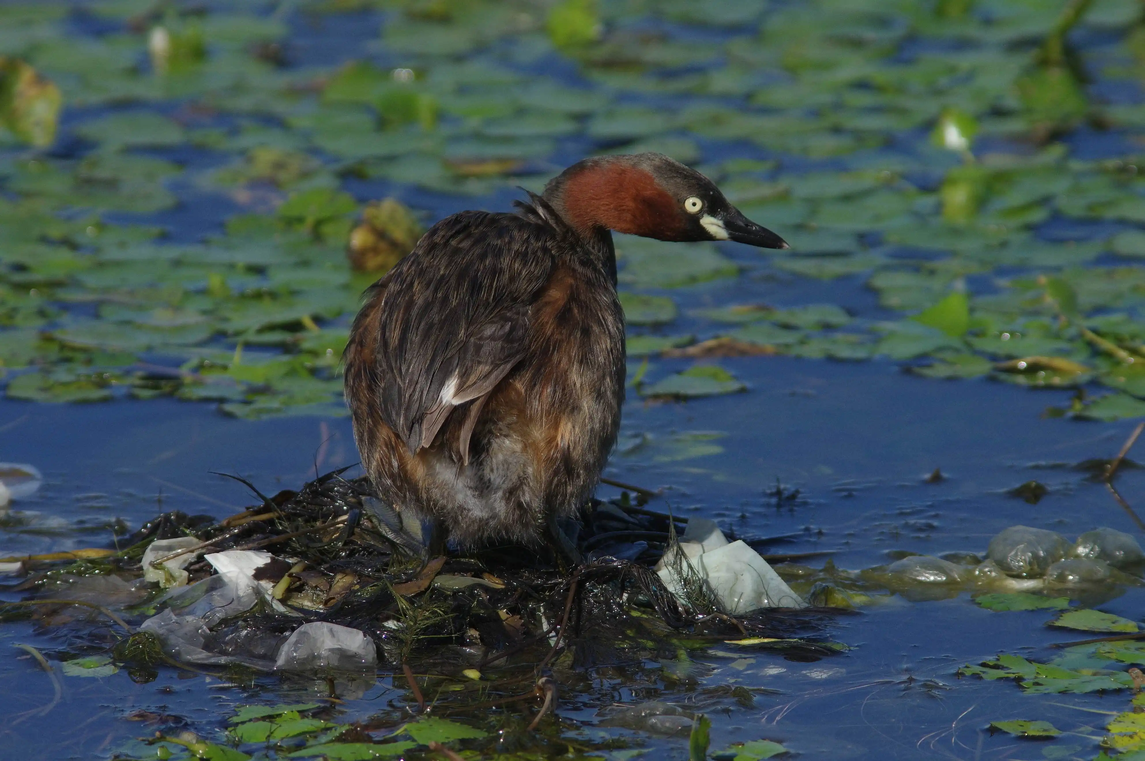 巣の材料は基本、水草なのですが、やはりそれだけではなくビニール袋などの人工物のゴミが混ざります。