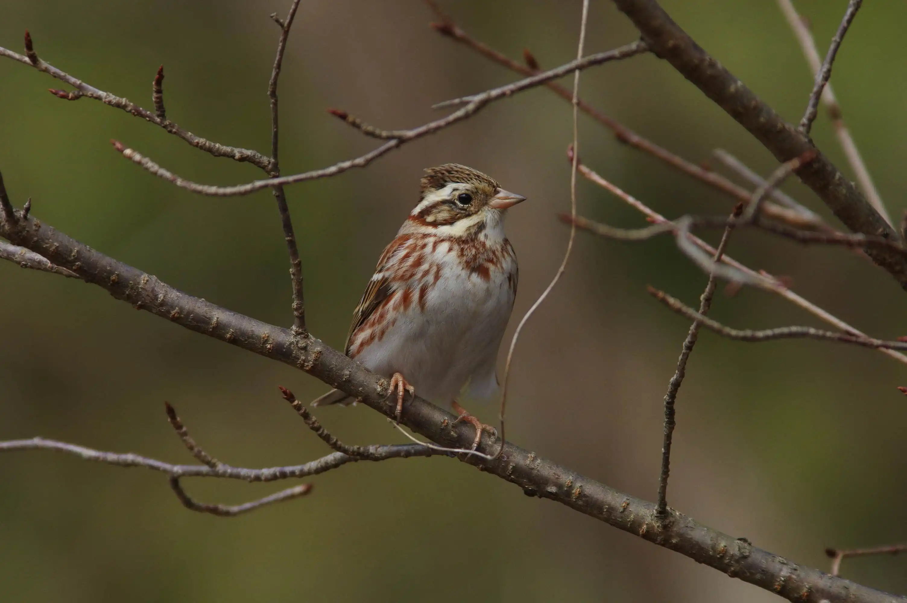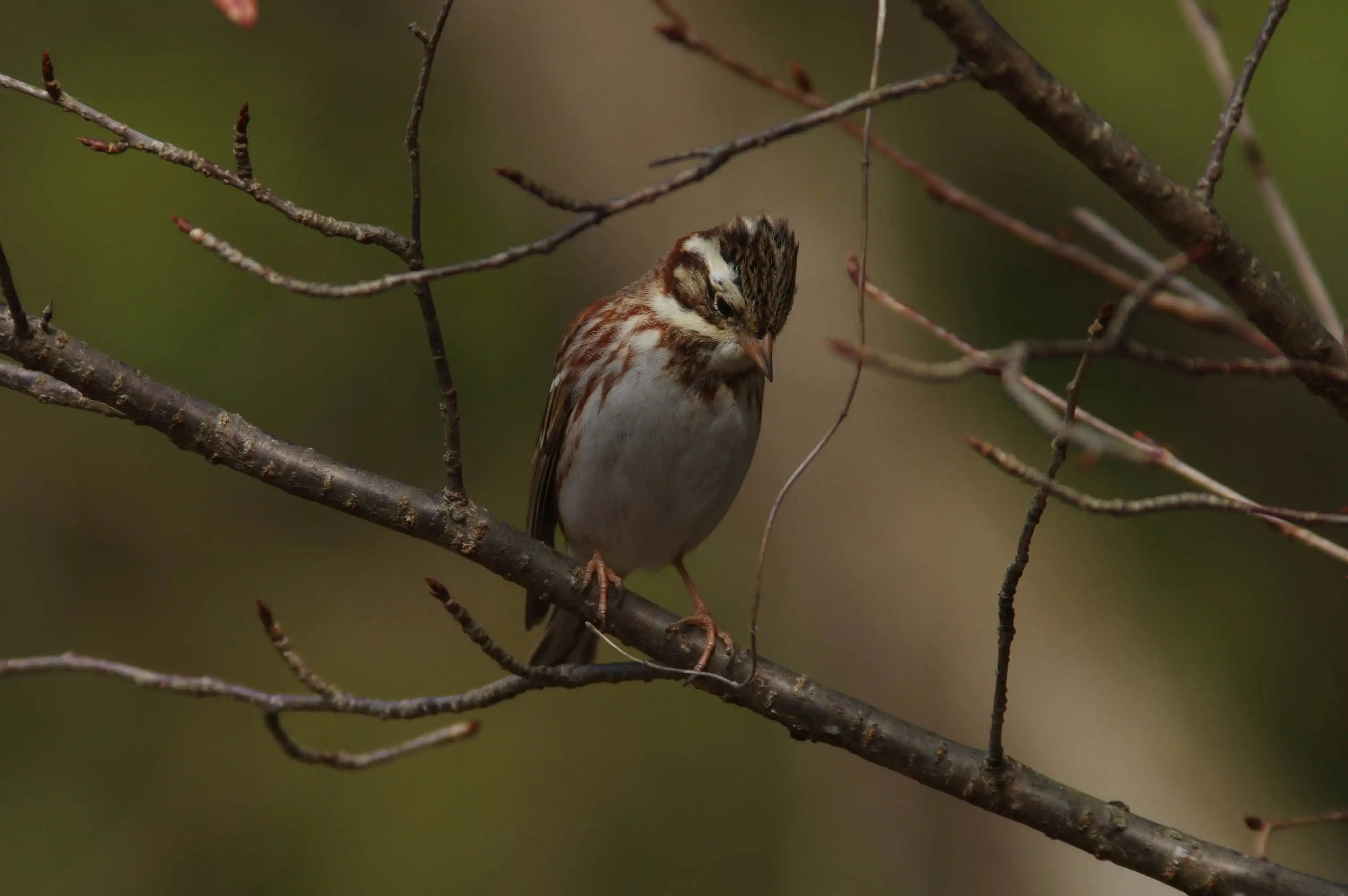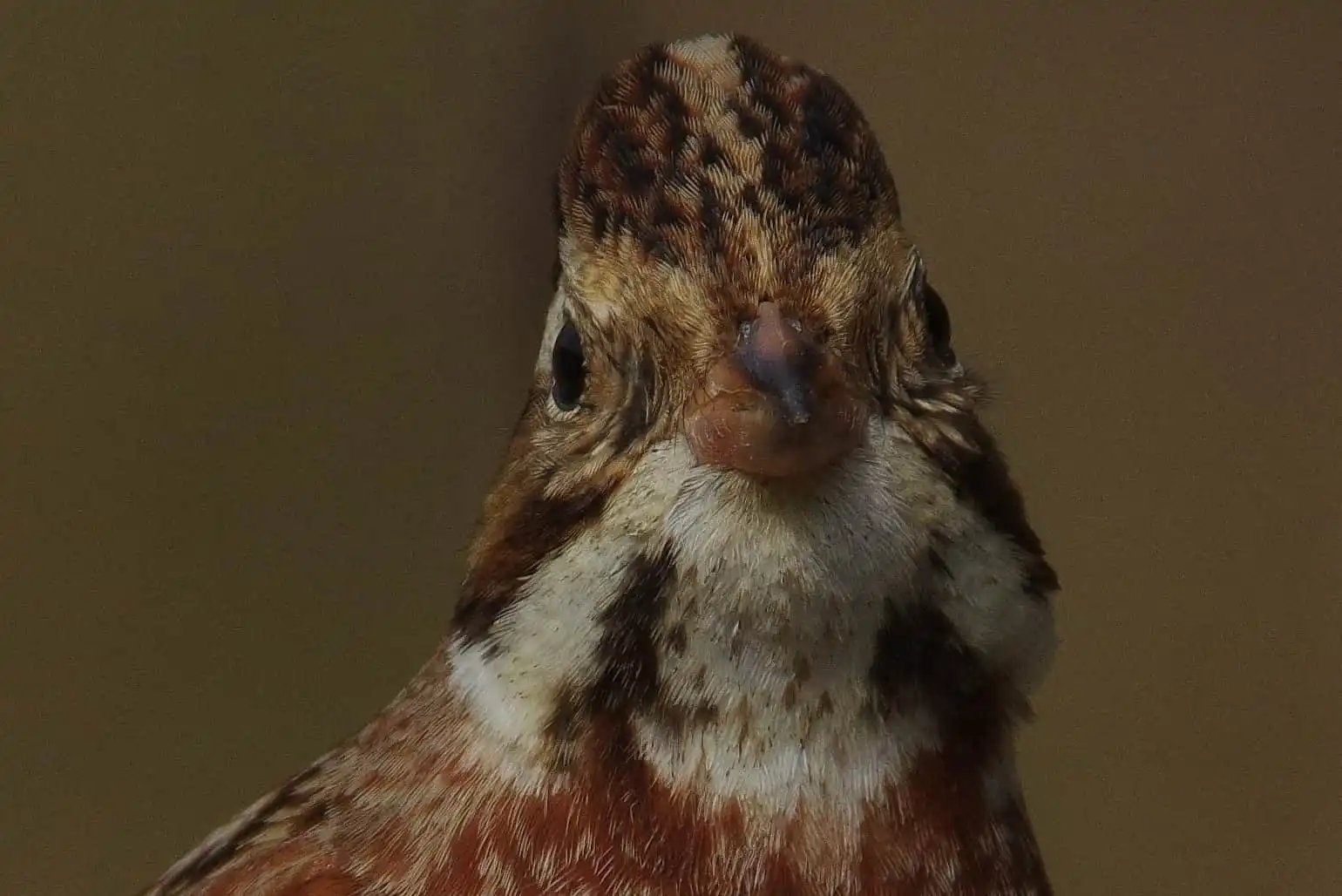 全体に褐色、赤褐色で、黒褐色の斑があります。腹はホオジロと違って白色で、全体的にホオジロより模様がはっきりしています。オスの夏羽では頭が黒色になり、白い眉斑が目立ちます。緊張すると冠羽を立てるのでカシラダカの名が付いたようです。