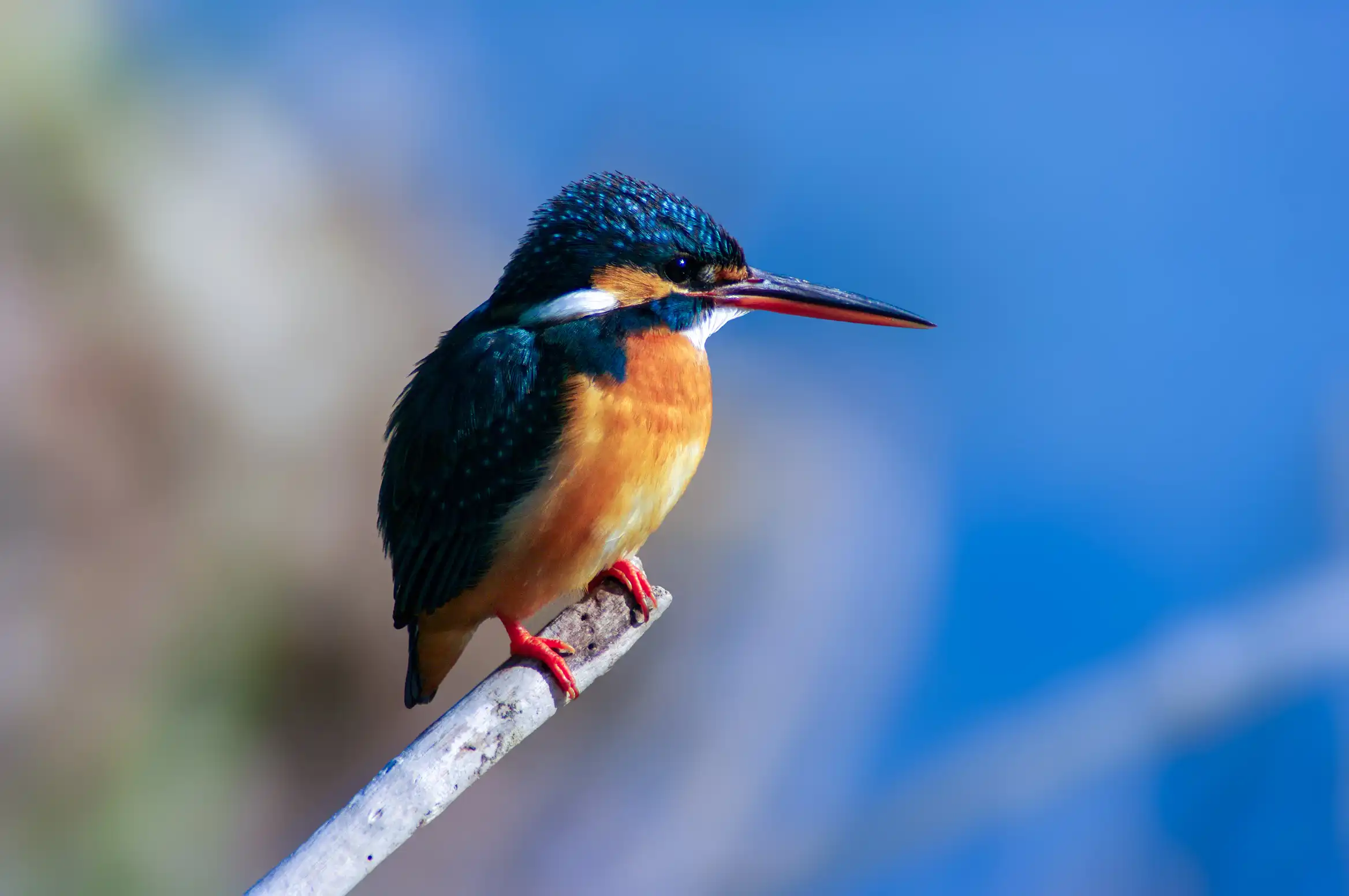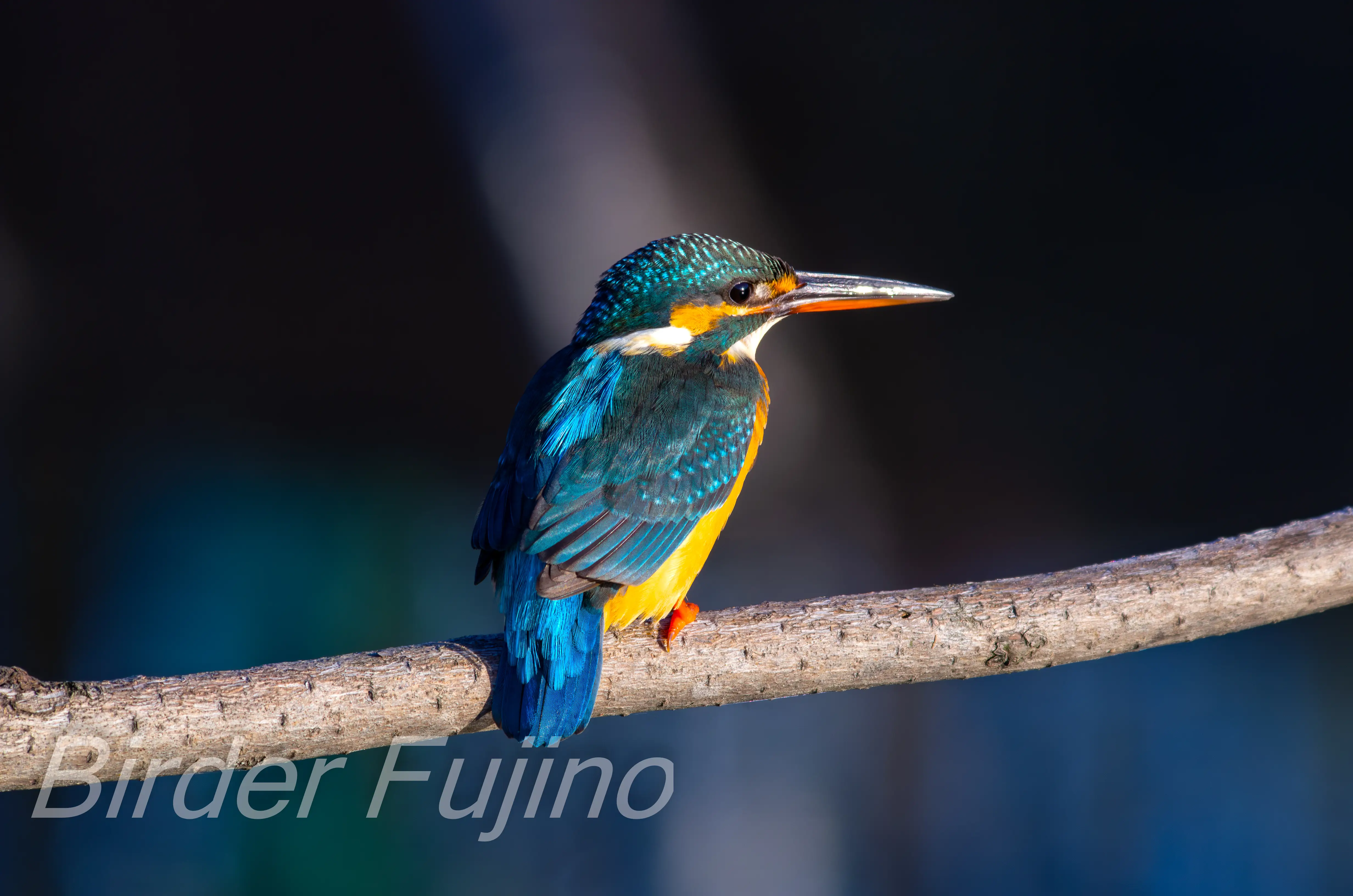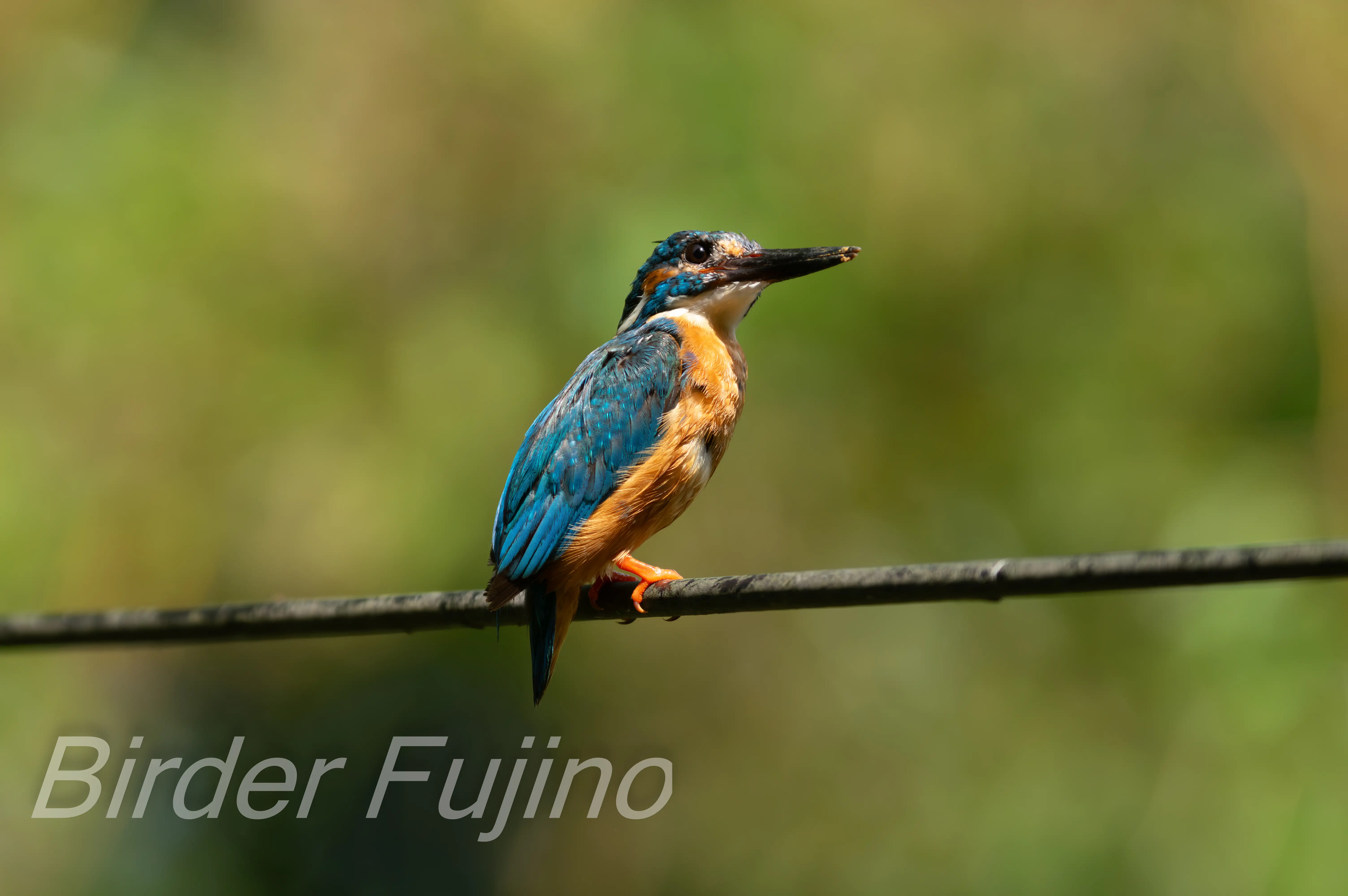 カワセミ幼鳥。足が黒く、クチバシも短いです。