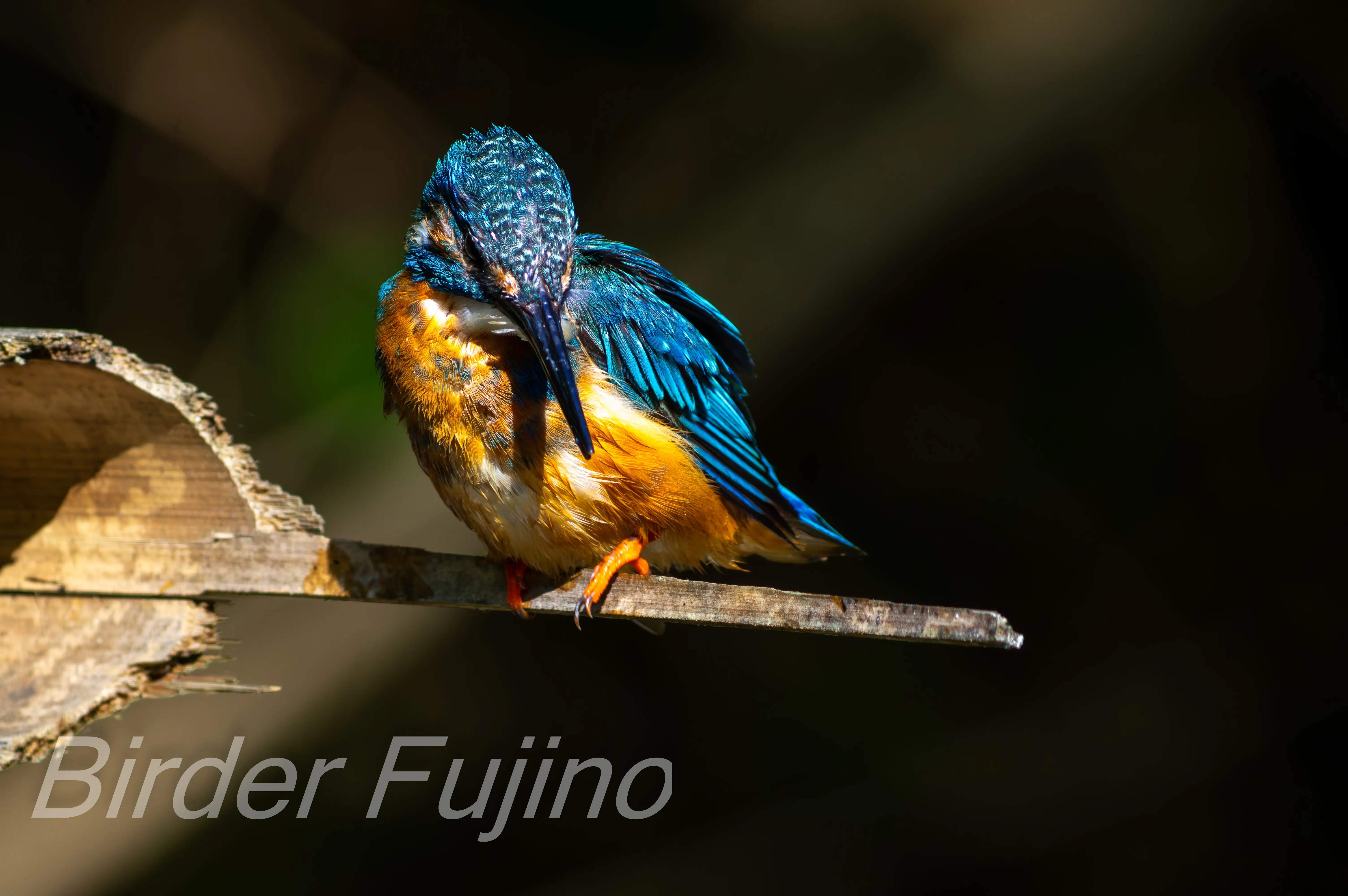カワセミ羽繕い。距離は近かったです。この距離でのカワセミの羽繕いの動きの速さは強烈です。