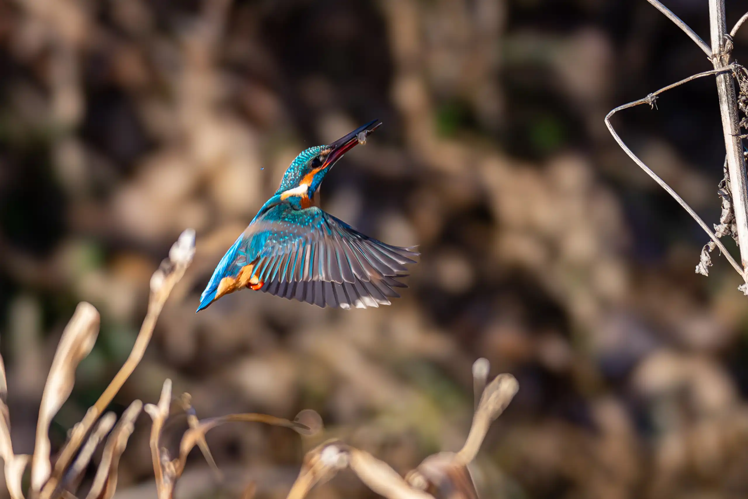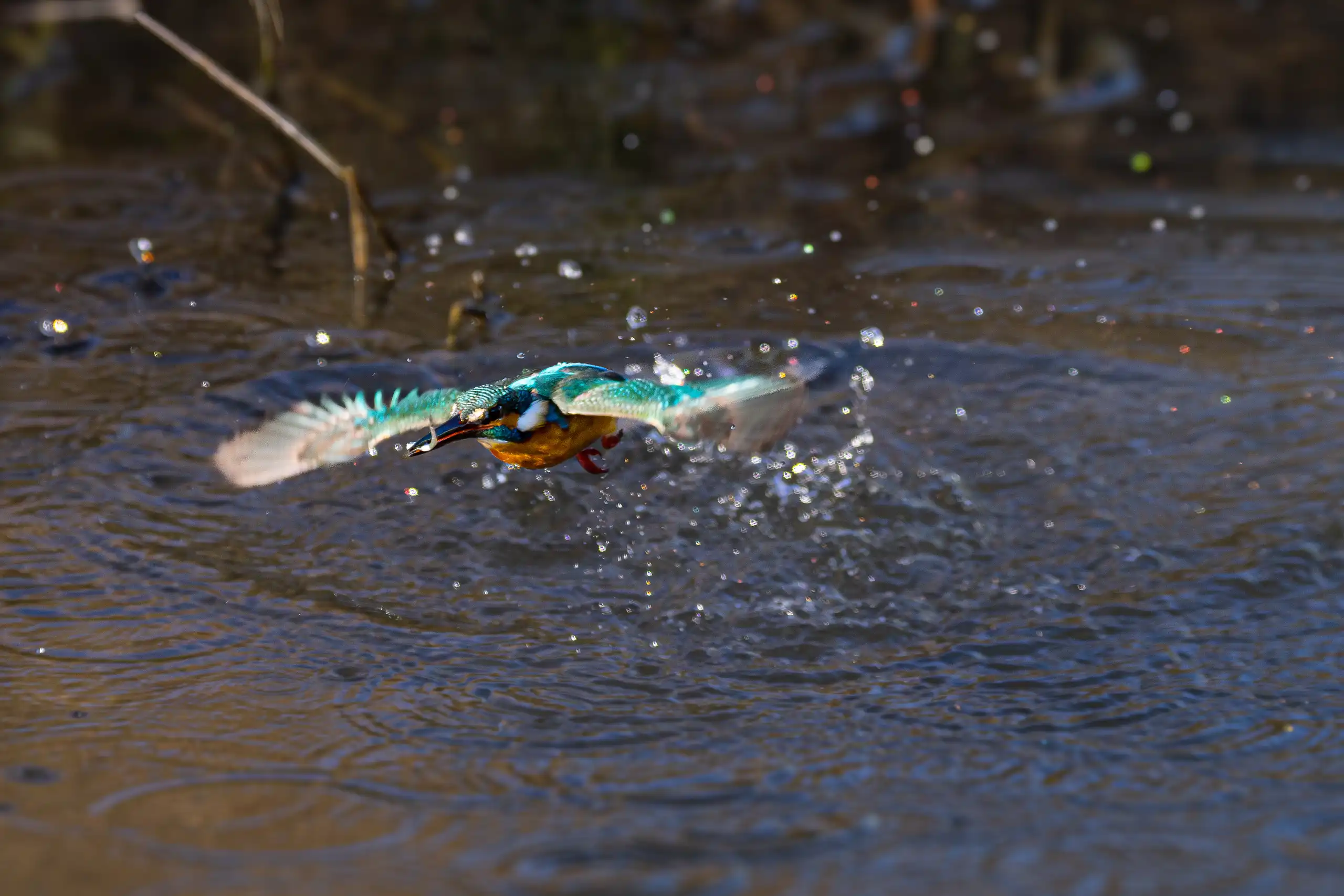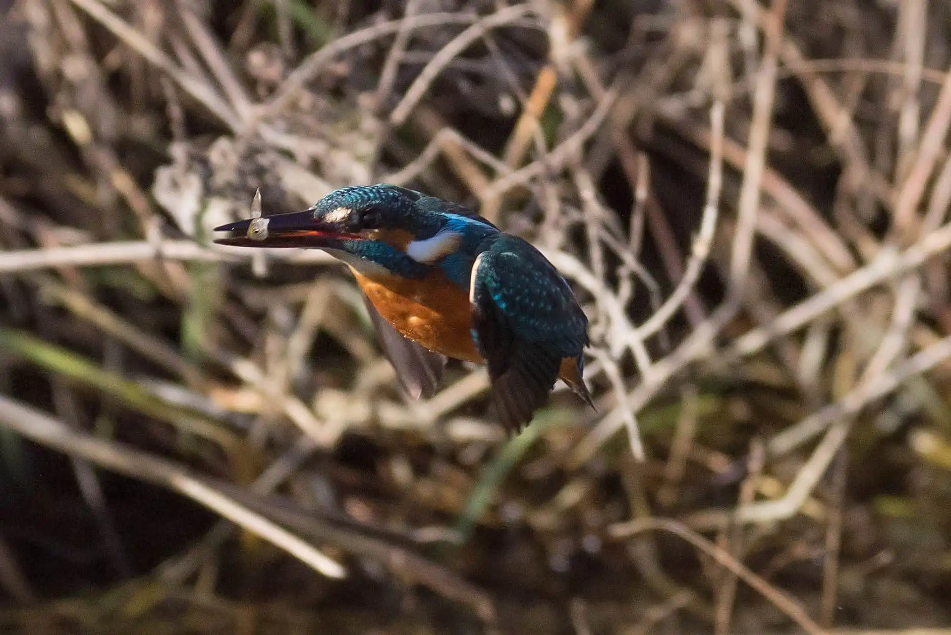 カワセミがこちら向きに飛び込んだので戻って来るまで連写し続けます。