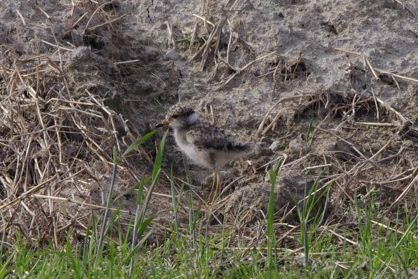 繁殖期、子育ては地面に巣をつくる。 ある年の初夏に、家の近くの休耕田でケリの雛を見かけてびっくり! 撮影したが、遠くて残念だった。 ケリの雛が無事に育つ様に願いながら、その場を離れた。