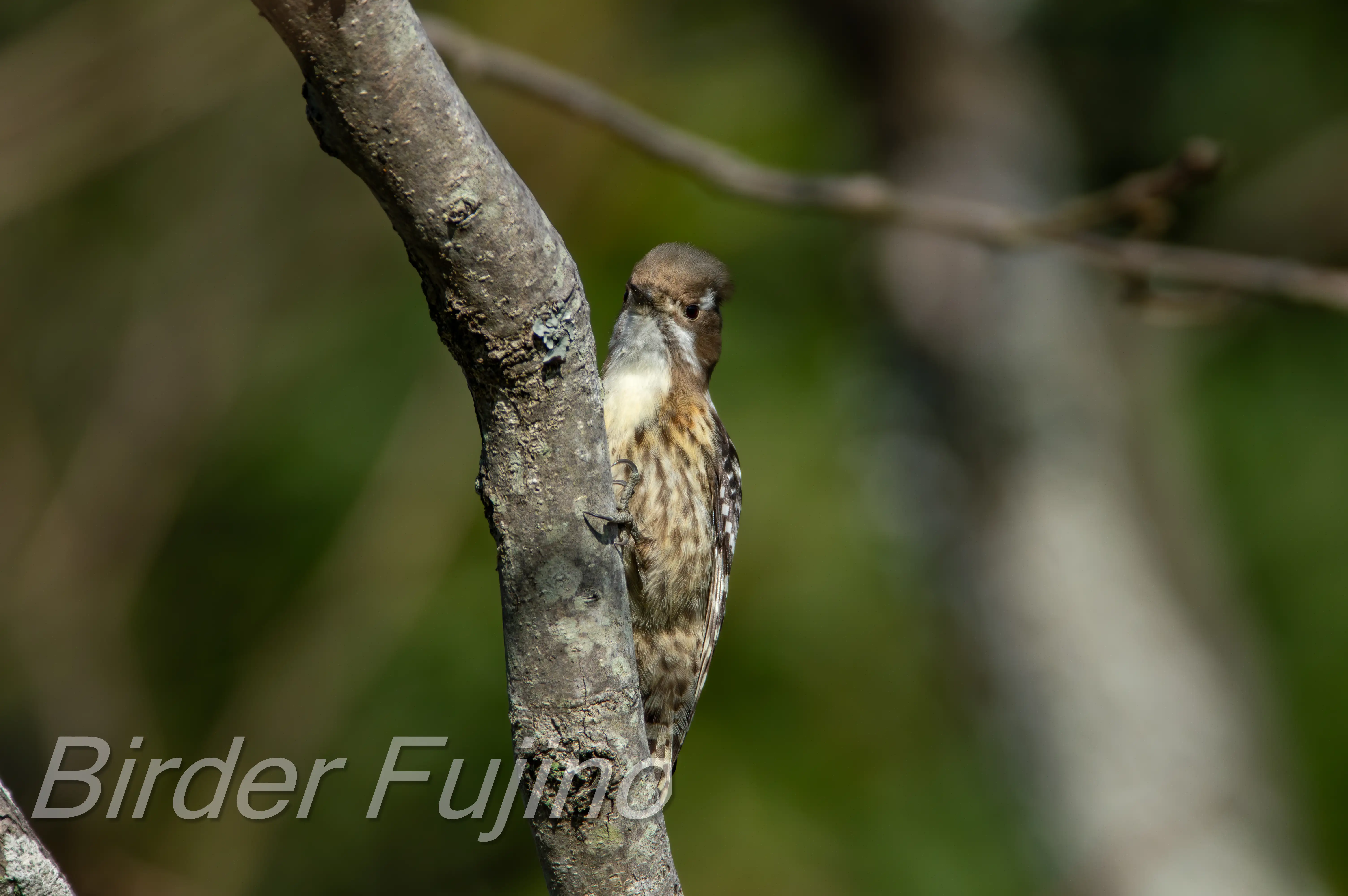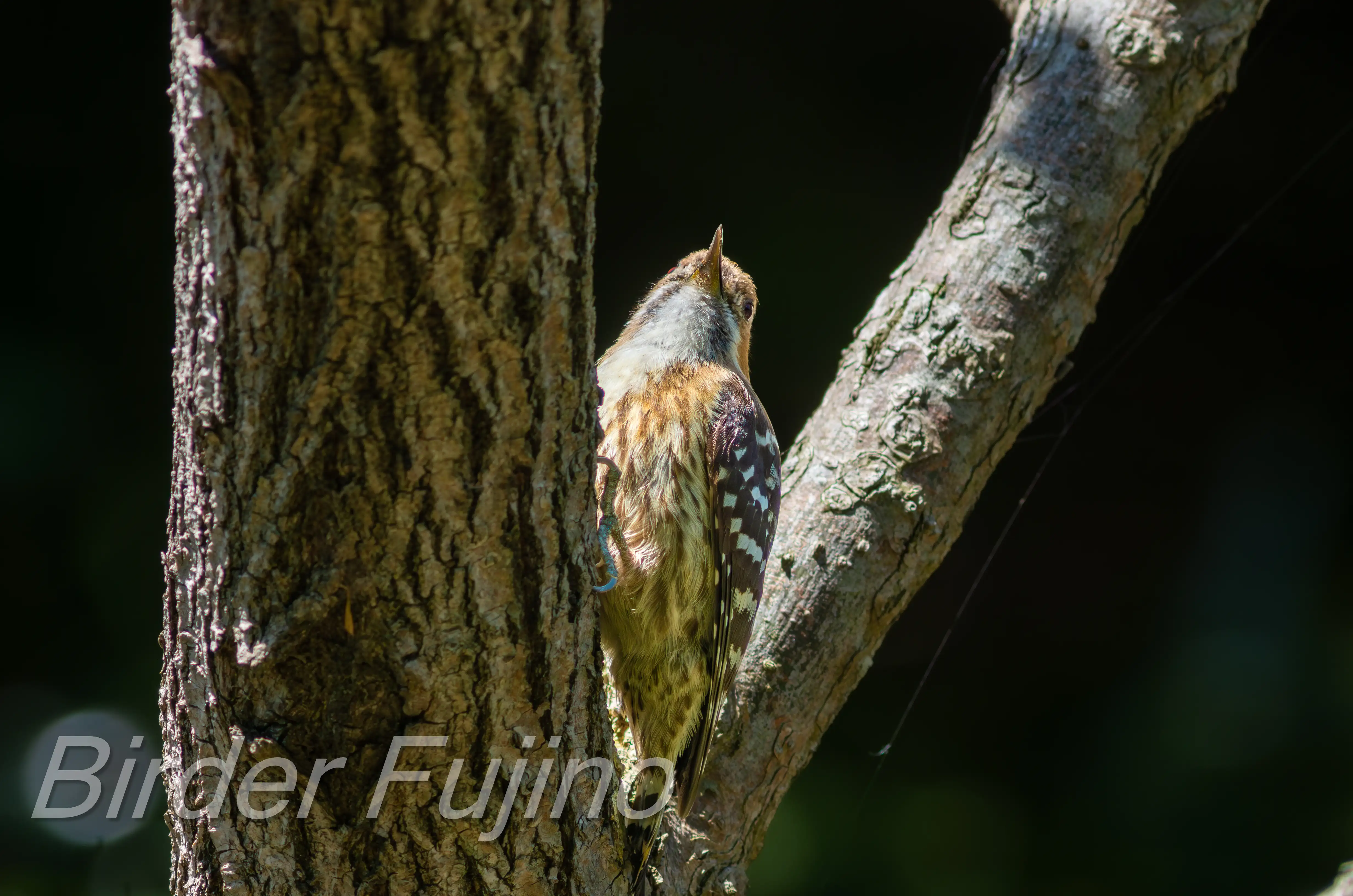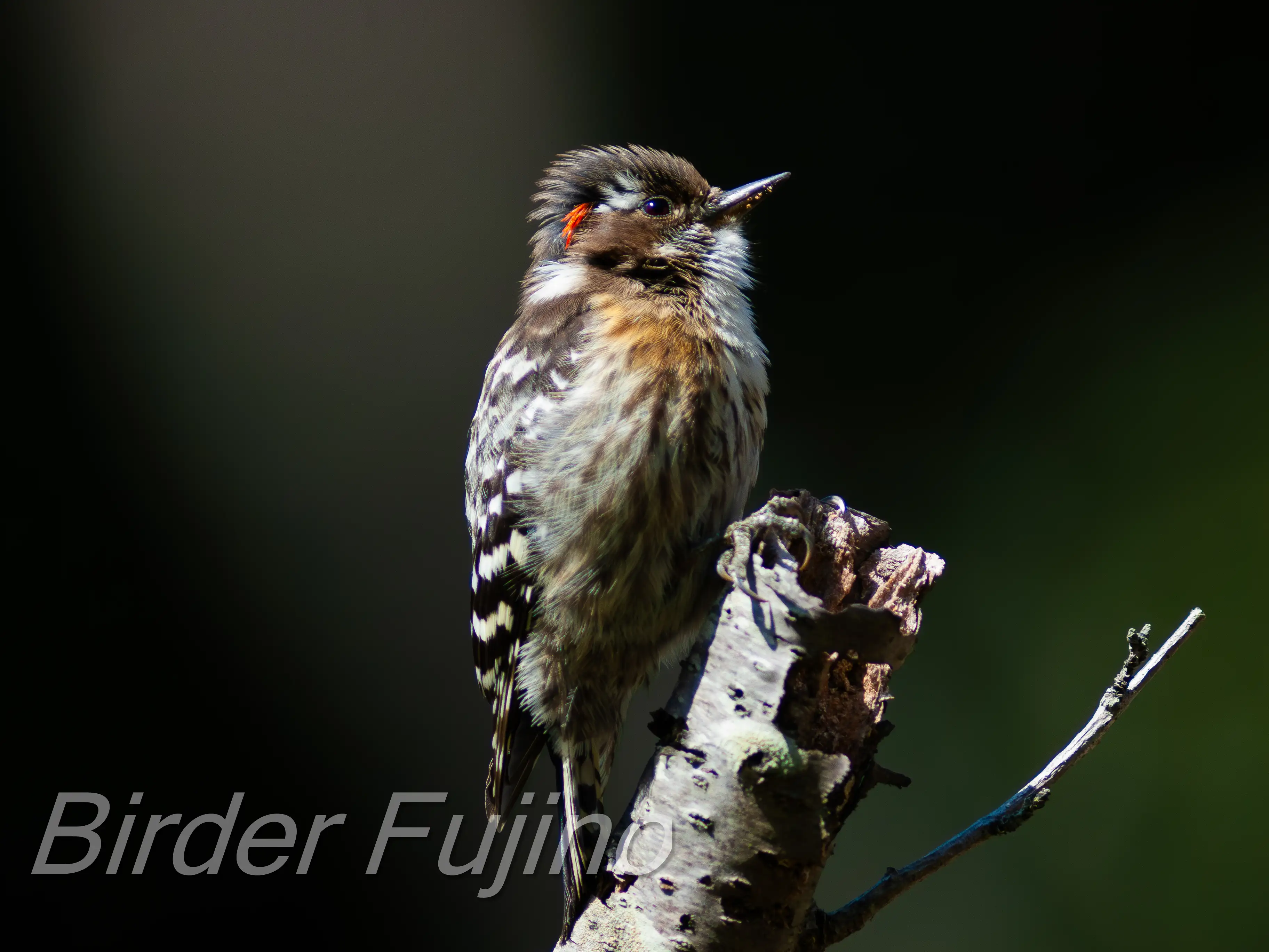 コゲラは少しもじっとしてない鳥で、フレーム入れたと思ったらちょこっと進んで、また入れたら進んでと撮影には苦労しますが、時々餌を見つけて深く掘るのかしばらく同じところで木をつつく時があり、そんな時が撮影のチャンスとなります。