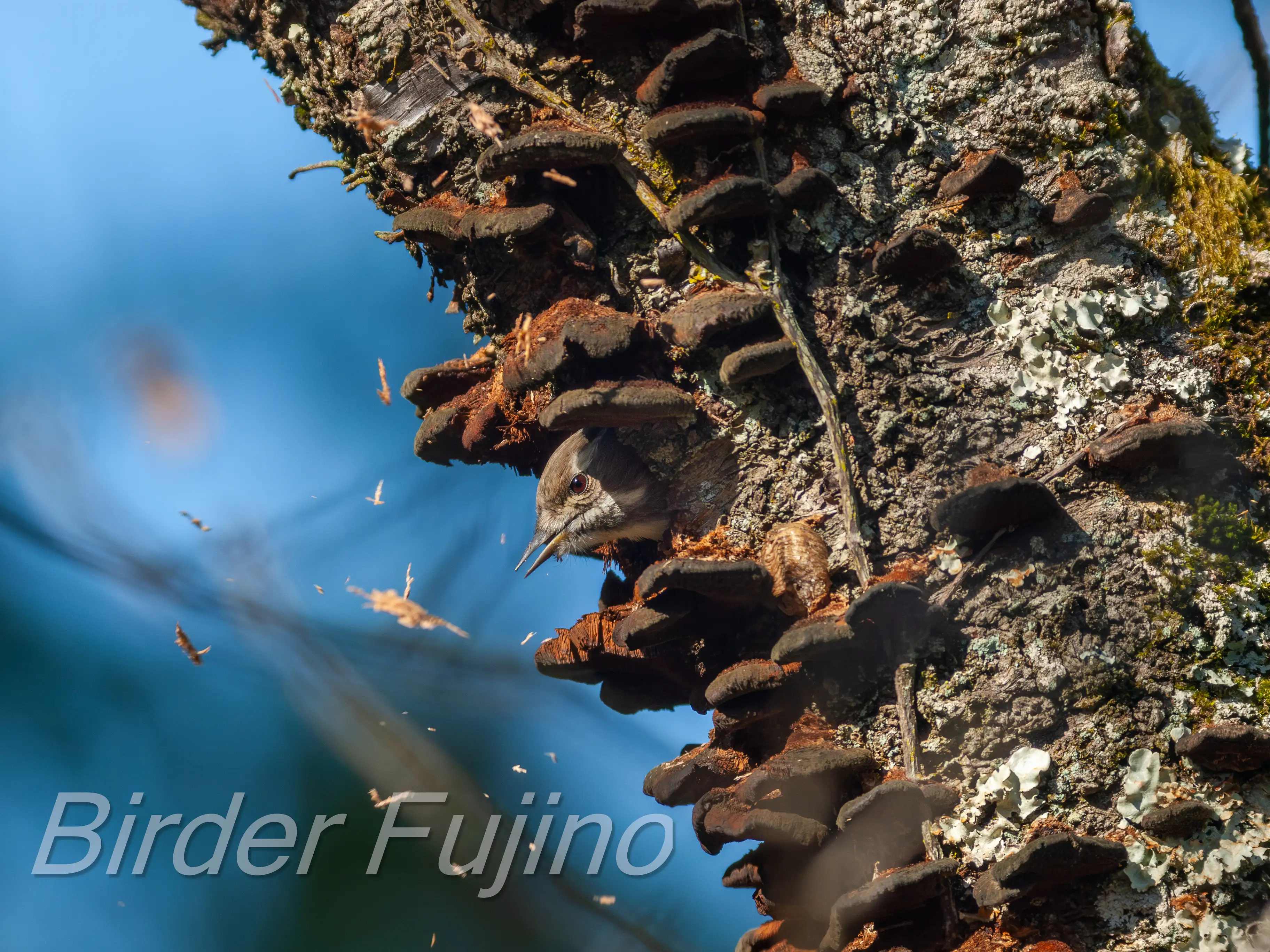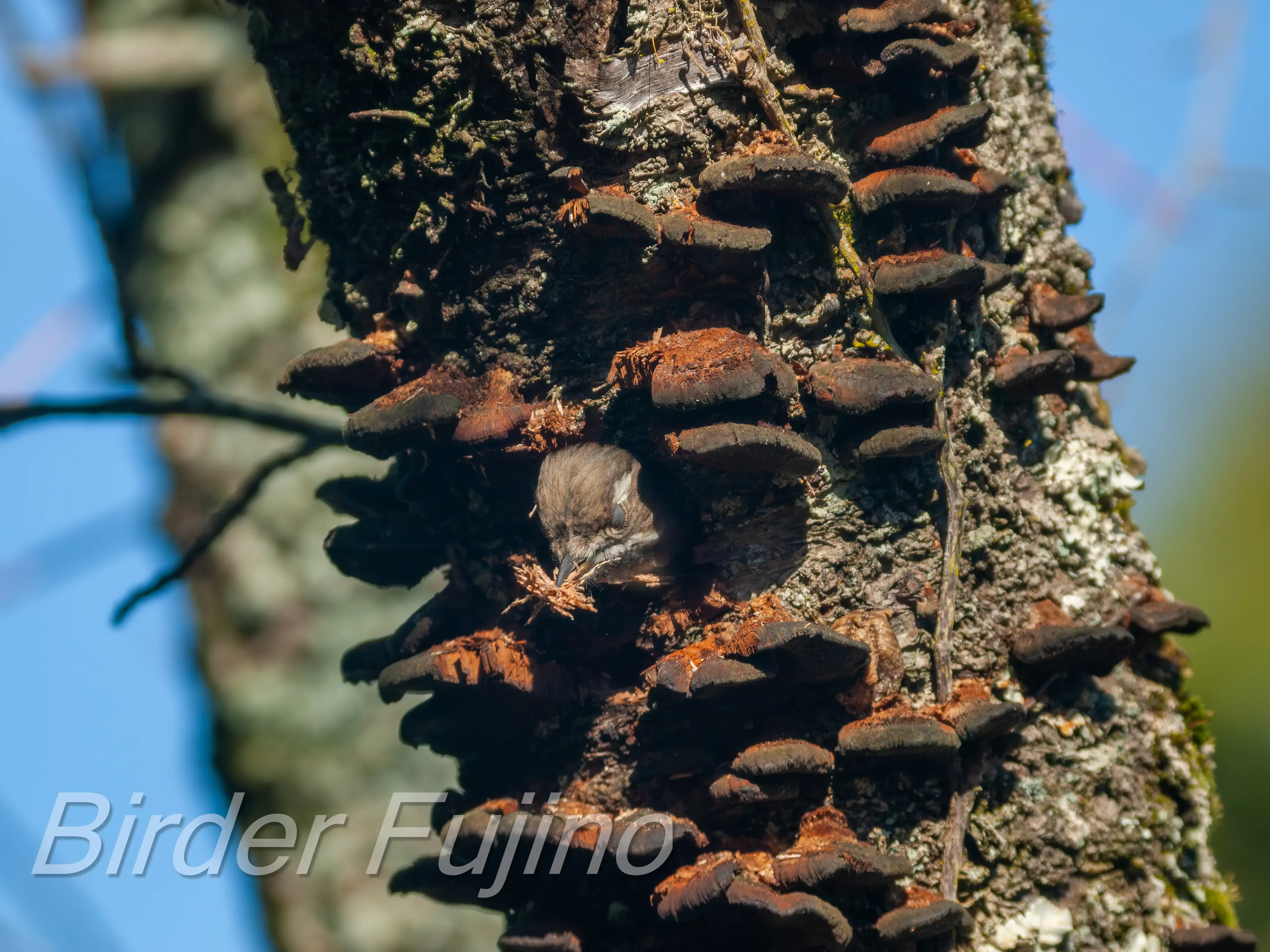 以前コゲラが穴を掘っていてその周りにコガラがいてコゲラがコガラを追い払っているようでした。 翌日様子を見に行ってみると、何とコゲラの掘った穴にコガラが入っています。せっかく掘った穴をコガラに横取りされてしまったようです。気の毒に。