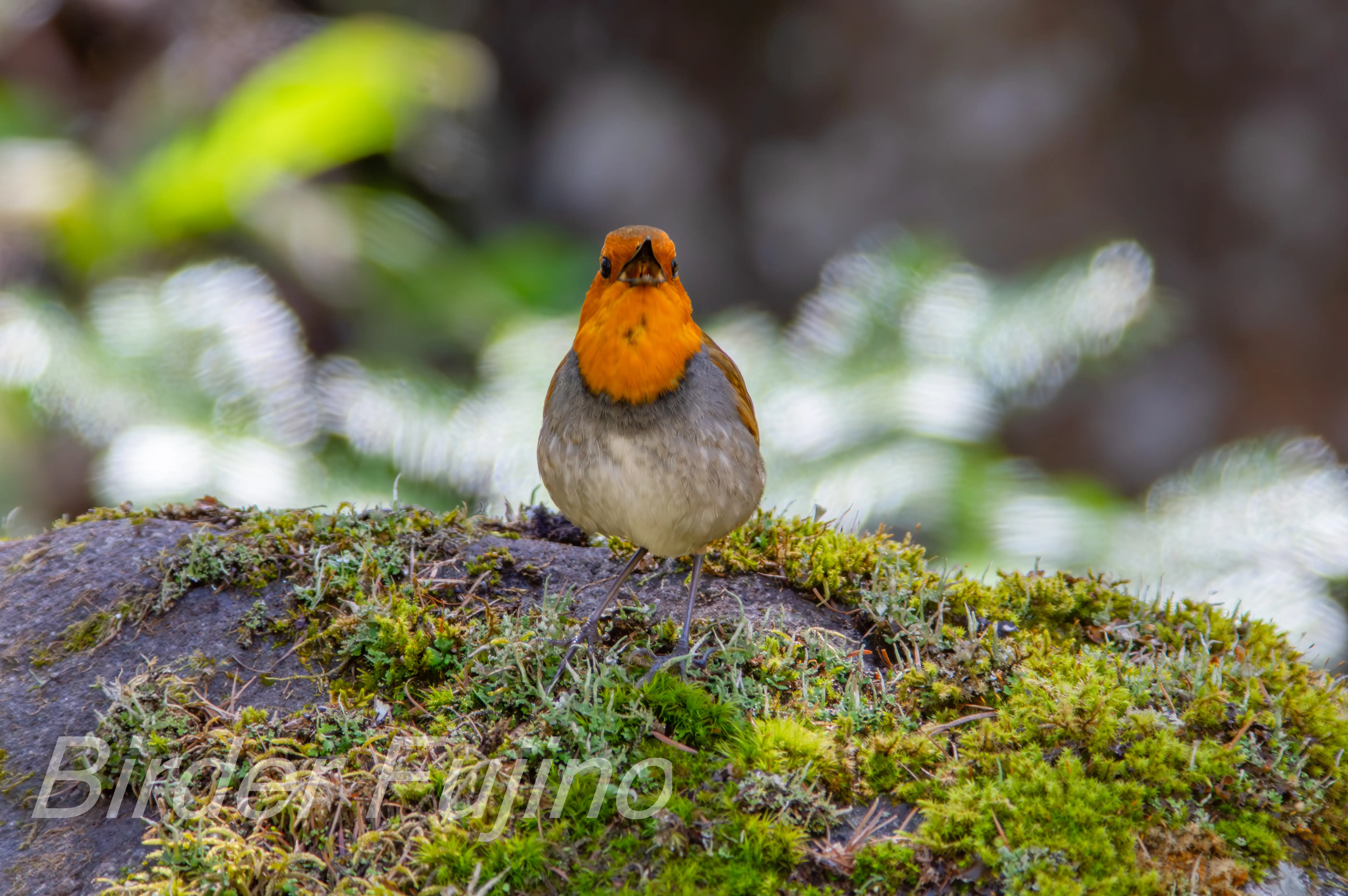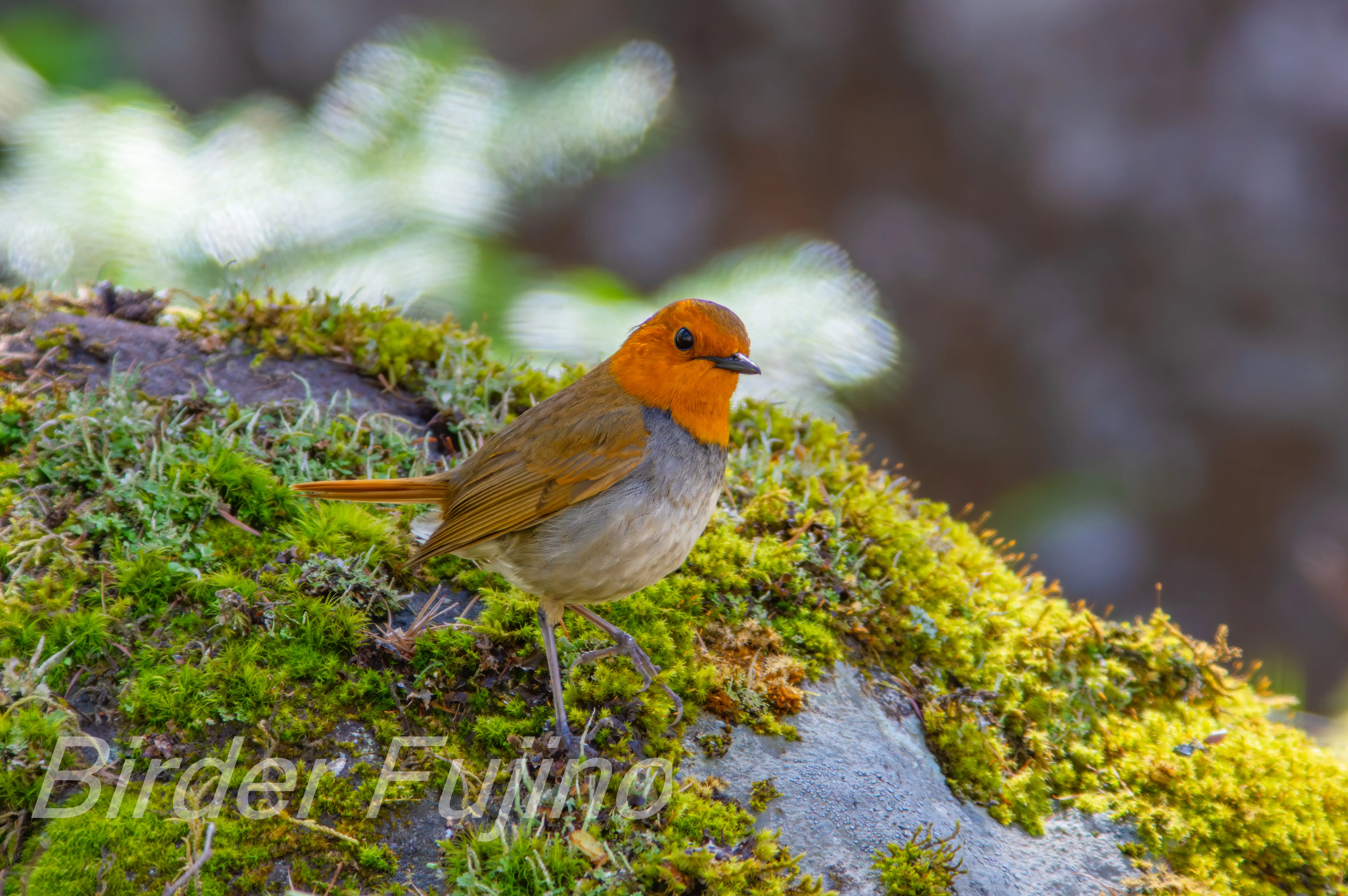 苔蒸した岩の上にチョコンと止まっている!、 夢中でシャッターを切っていました。