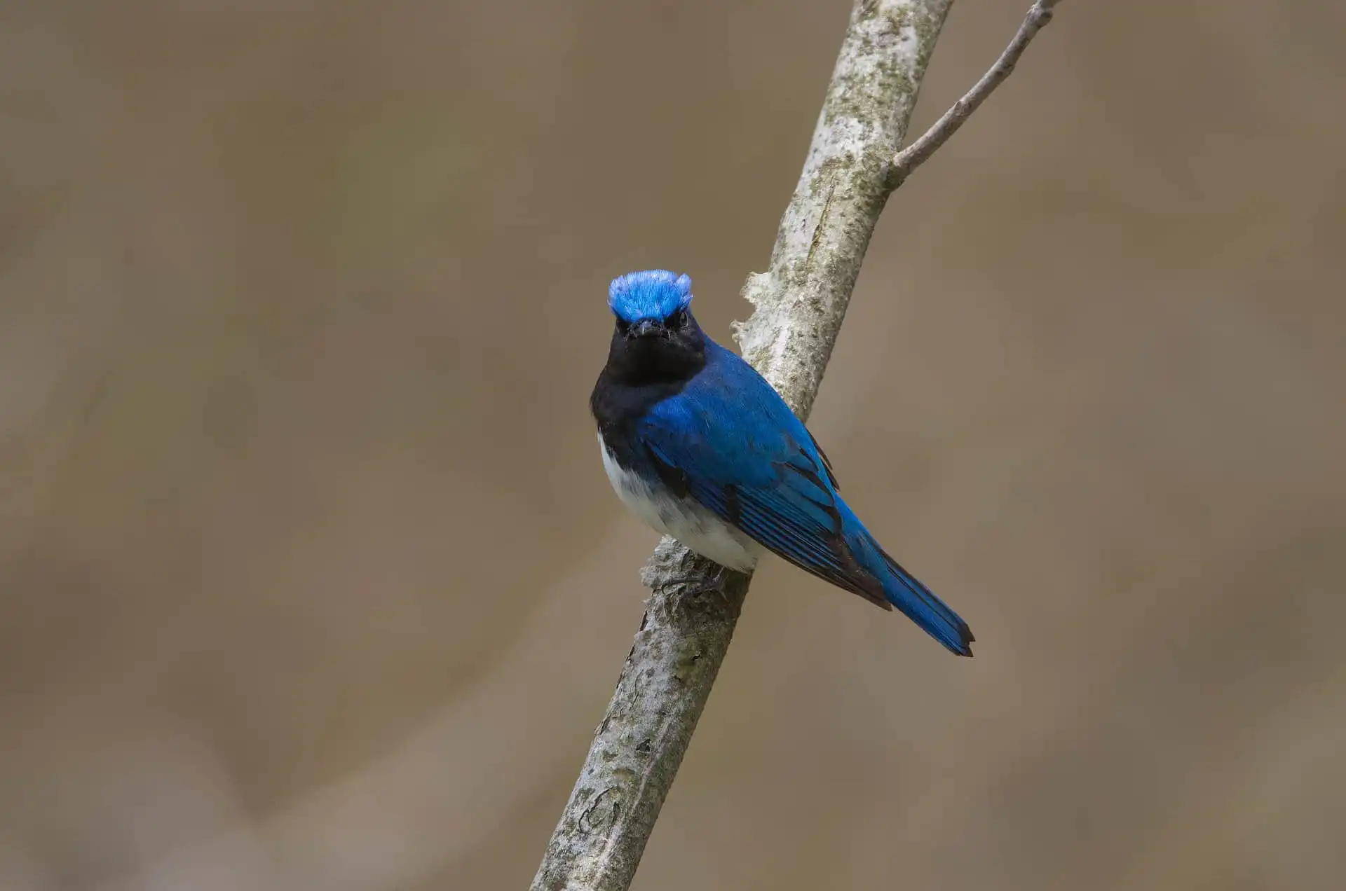 また、オオルリは青い鳥の代表でもあります。 メスは薄茶色の目立たない色ですが、オスは綺麗な瑠璃色、額から喉、胸は紺色、腹は白、頭頂部は水色が買ったブルーと野鳥に関心を持ち始めた人なら最も見たいと思うだろう青い鳥のひとつです。その青さはルリビタキと比べると濃い紺色がかったイメージです。 雄の幼鳥は頭部はメスのようで体は雄のように青くなります。