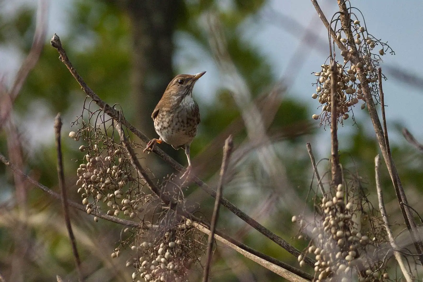 シロハラは比較的暗い所に居ることが多いですが、藪のそばの開けた地面でエサを啄んでいることもありますので、その時は低い位置からの撮影を忘れずに。