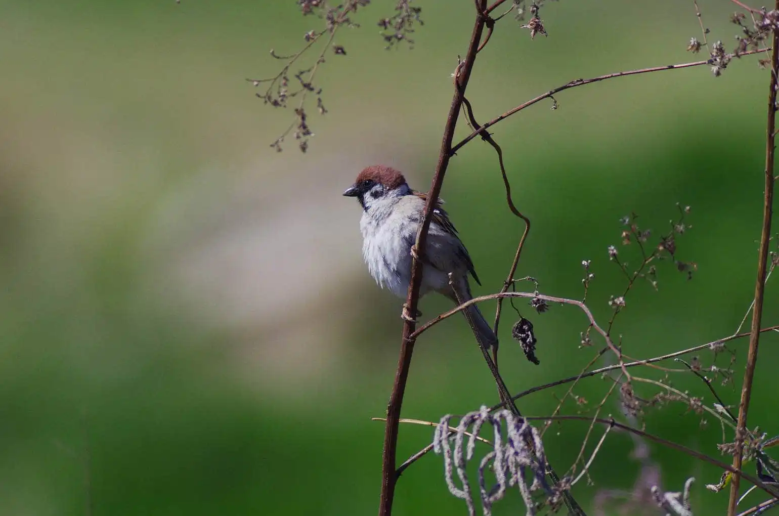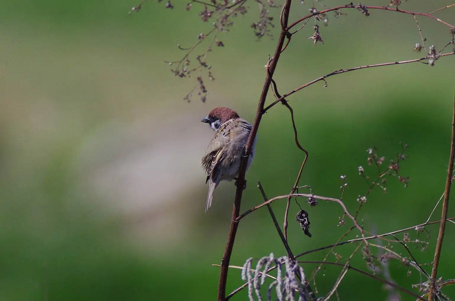 野鳥撮影を始めた頃、新しく買った望遠レンズのテスト撮影をしたくて、子供の頃のイメージでスズメだったら会えるかなと思い、野原や田んぼ、畑を廻りましたが、どっこい中々スズメに会えずに困ったのを覚えています。
