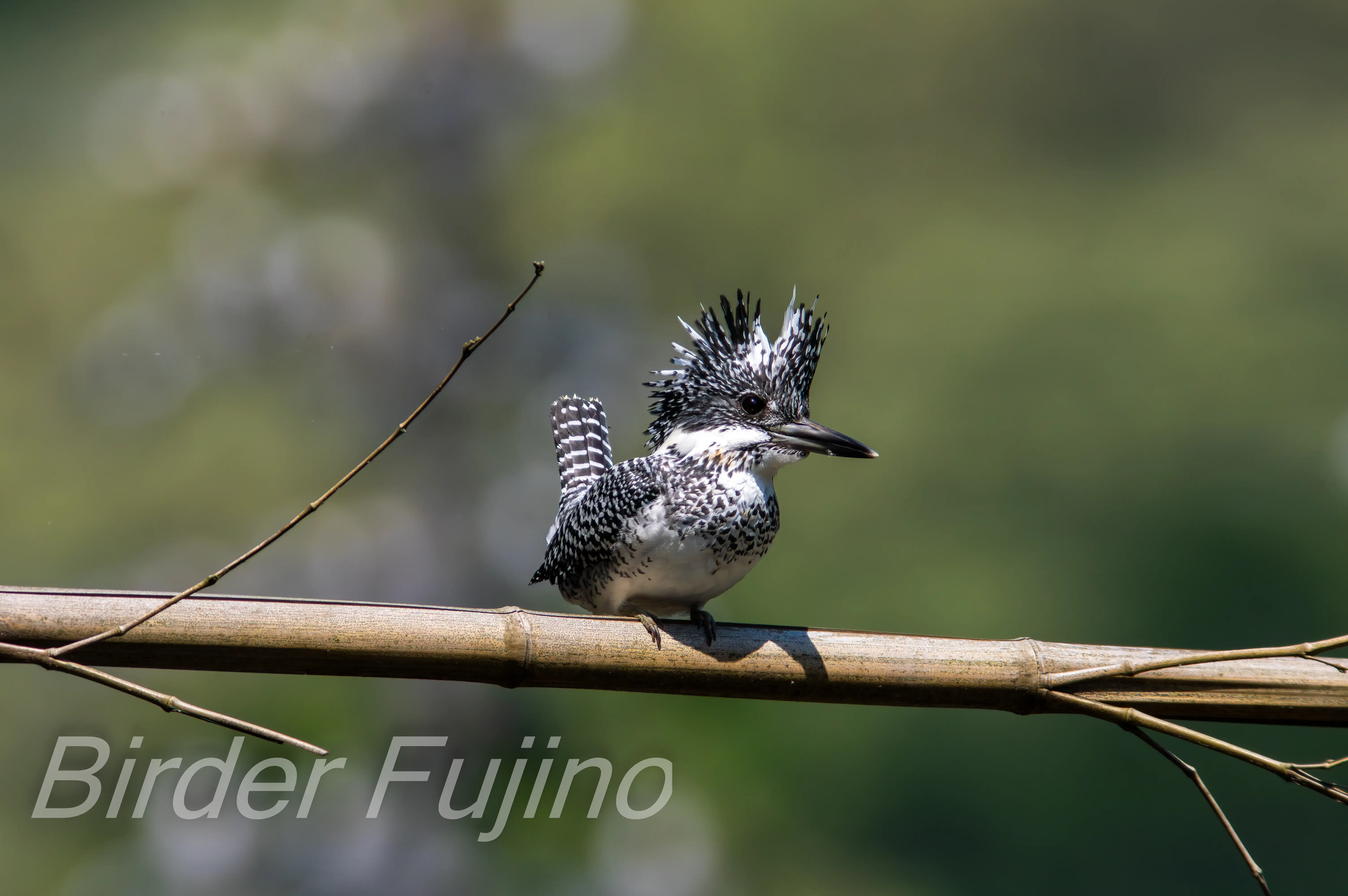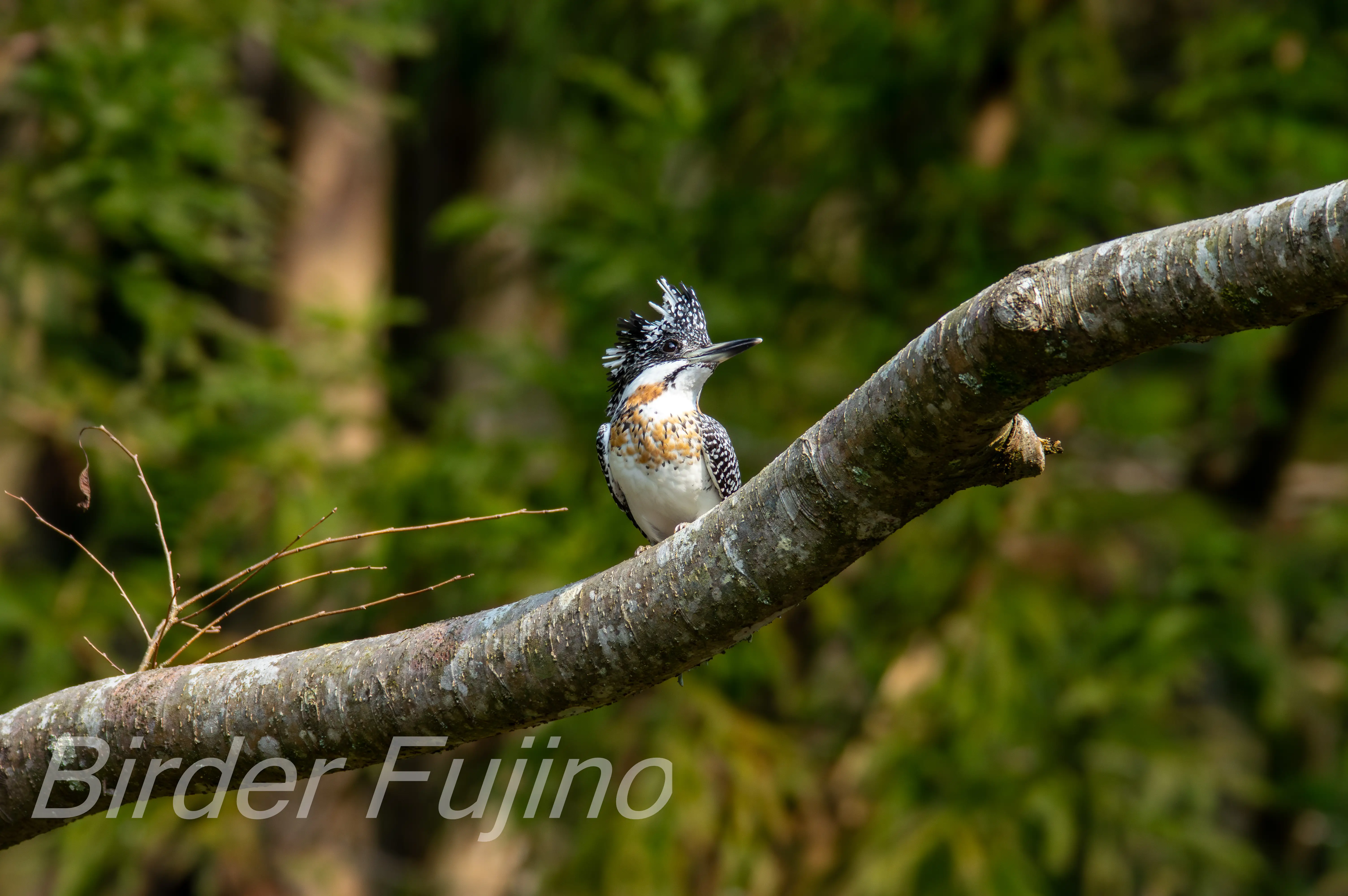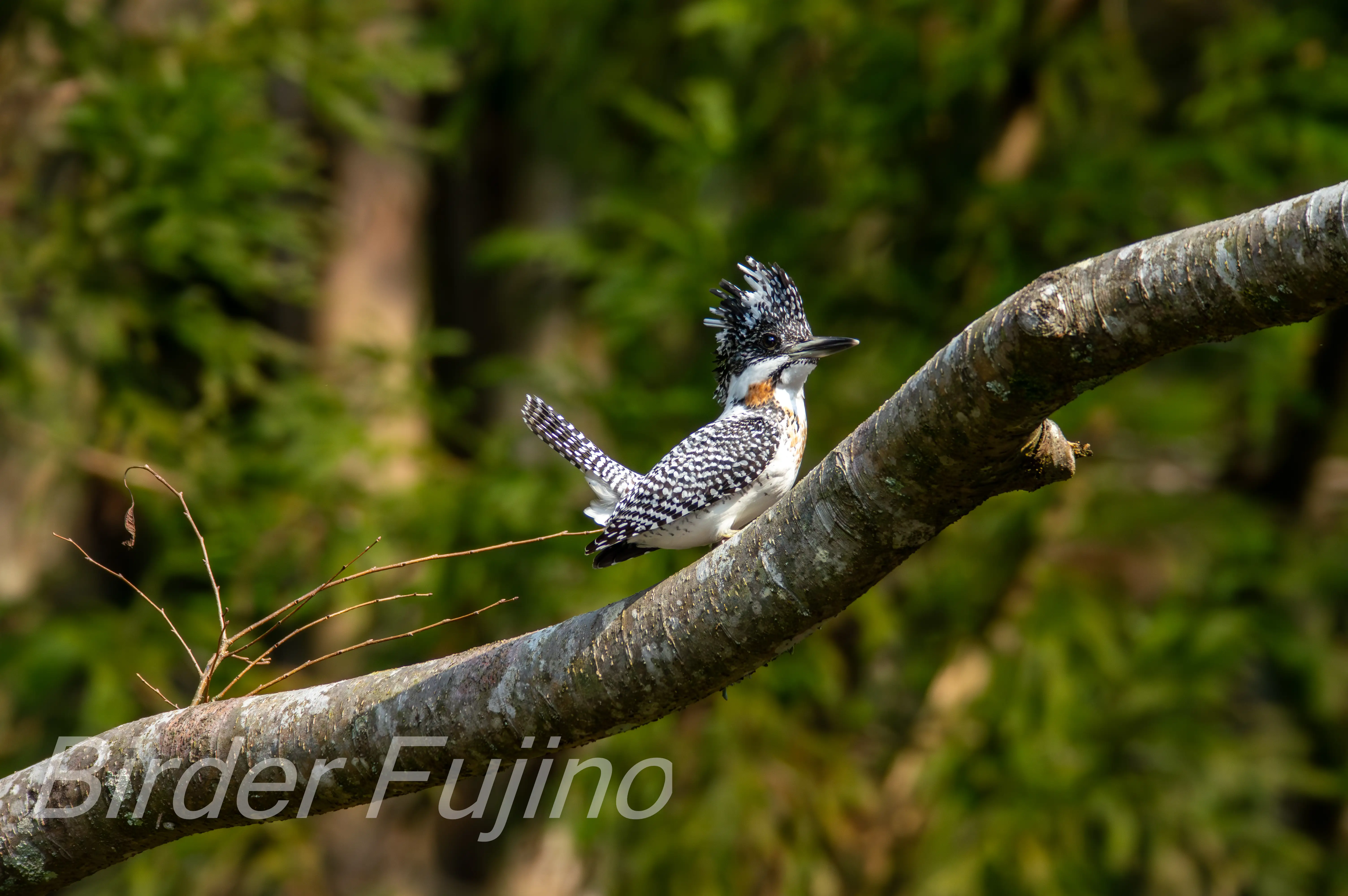 ヤマセミの鳴き声が聞こえてきて止まり木に止まり、しばらくは「ケッ、ケッ」っと鳴いていたのですが、そのうちに鳴き声はなくなり、