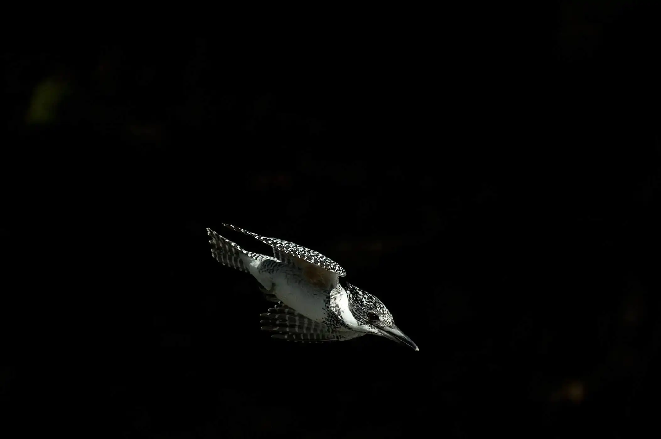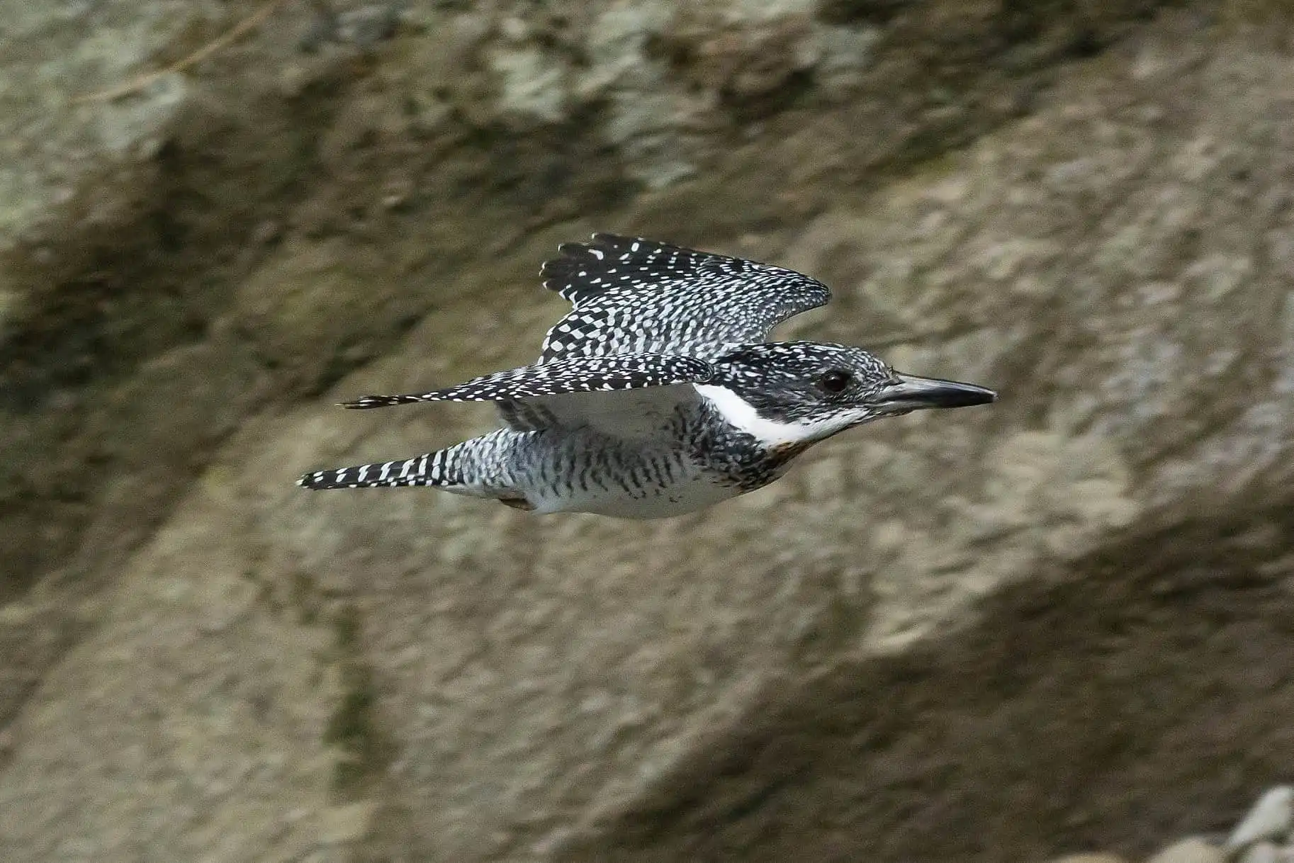 ヤマセミ飛翔写真 BORG 71FL PENTAX K-3。ヤマセミはそこそこ大きさがあり、被写体までの距離もあってもそこそこの大きさに写るので、照準器で捉えて追い続け易いです。