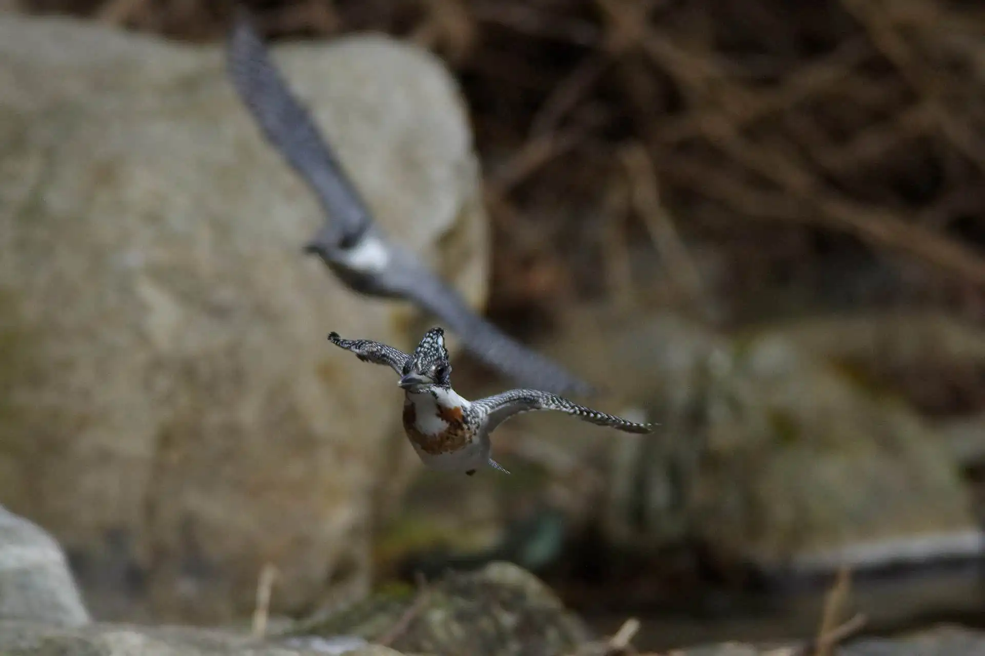 AF BORG 71FL PENTAX K-3。ヤマセミ二羽ものです。雌雄で仲良く飛んで行きます。